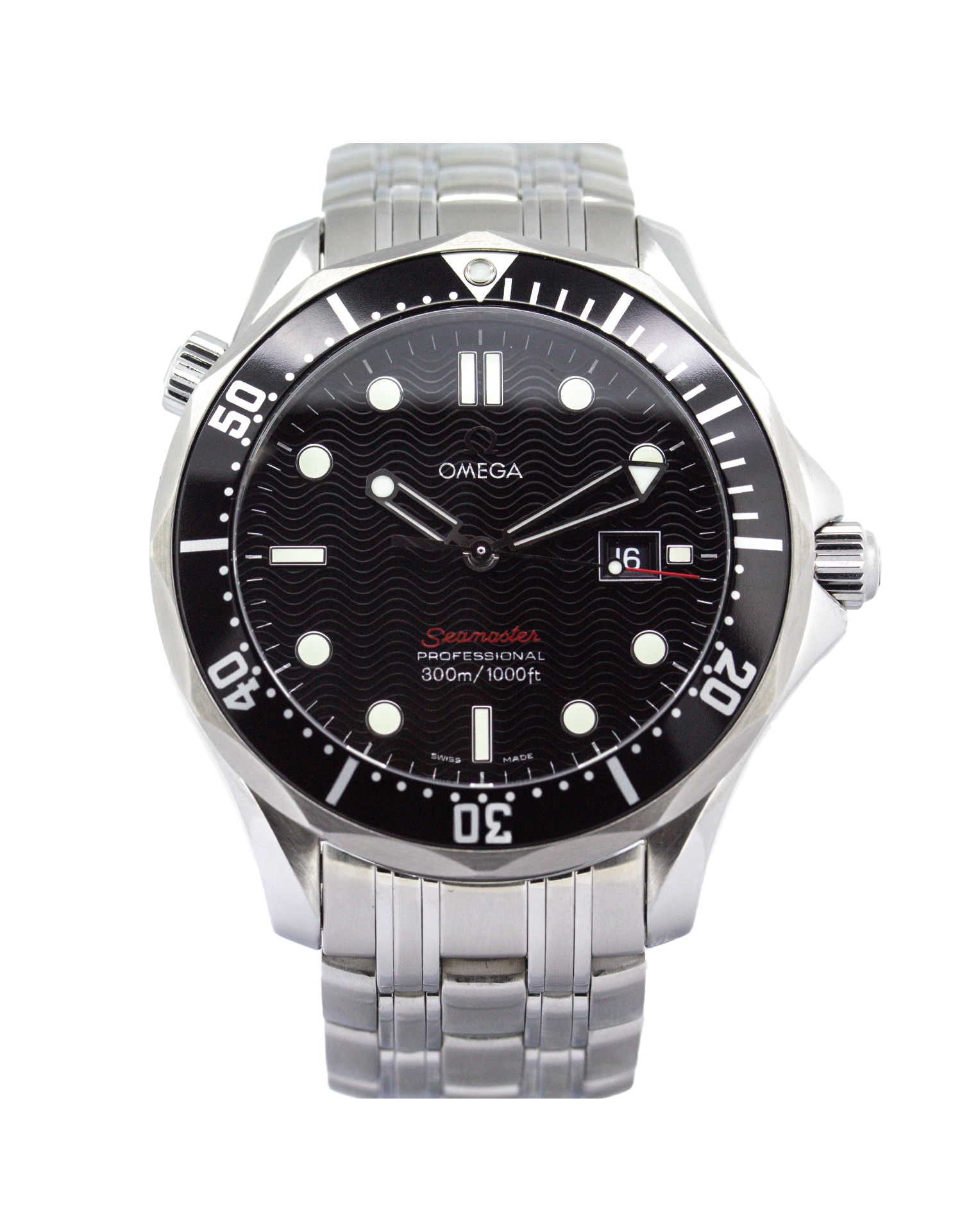 This Omega Seamaster 300m 212.30.41.61.01.001 has a black dial and a bracelet strap. This Omega has undergone a thorough inspection of accuracy, functionality and condition at our Omega certified service centre to determine the level of reconditioning required to meet our strict standards. It has also been checked against our records to ensure authenticity. All our watches have a 24-month warranty for your peace of mind.