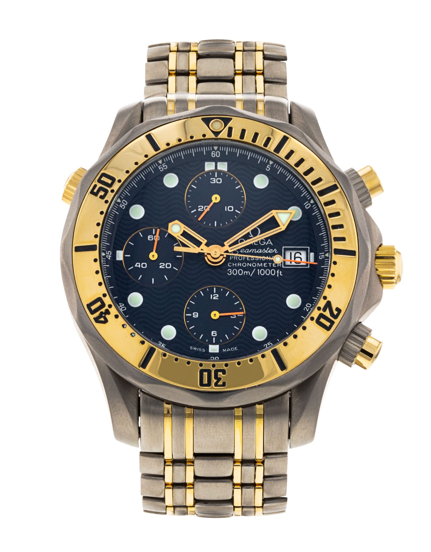 This Omega Seamaster Chrono Diver 2297.80.00 has a blue baton dial and a bracelet strap. This Omega has undergone a thorough inspection of accuracy, functionality and condition at our Omega certified service centre to determine the level of reconditioning required to meet our strict standards. It has also been checked against our records to ensure authenticity. All our watches have a 24-month warranty for your peace of mind.