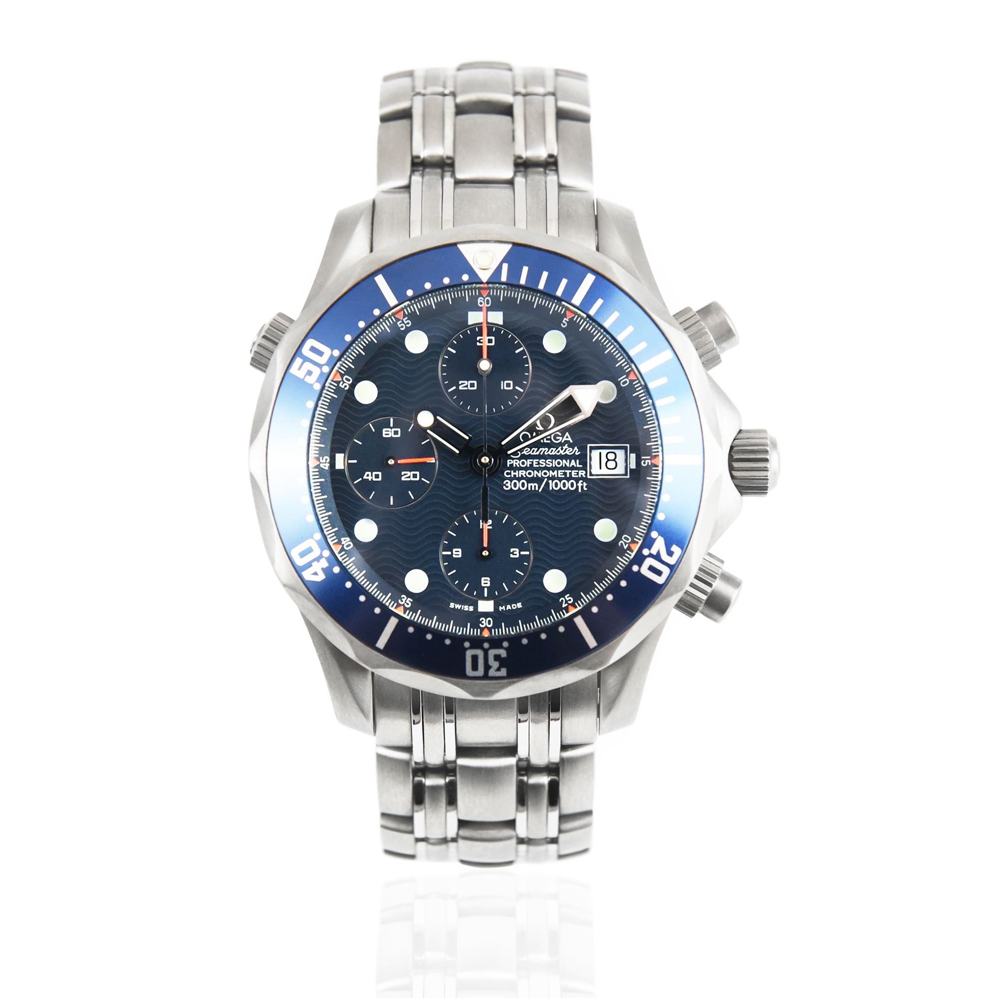 This Omega Seamaster Chrono Diver 2298.80.00 has a blue dial and a bracelet strap. This Omega has undergone a thorough inspection of accuracy, functionality and condition at our Omega certified service centre to determine the level of reconditioning required to meet our strict standards. It has also been checked against our records to ensure authenticity. All our watches have a 24-month warranty for your peace of mind.