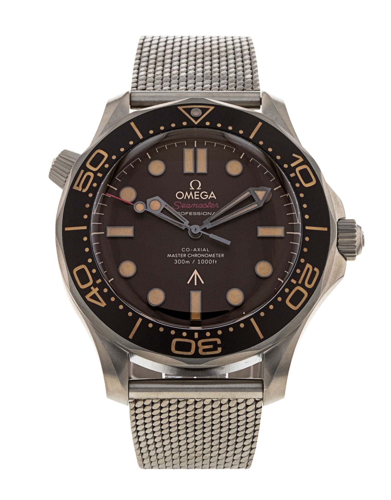 This Omega Seamaster Diver 300m - James Bond Edition 210.90.42.20.01.001 has a brown dial and a bracelet strap. This Omega has undergone a thorough inspection of accuracy, functionality and condition at our Omega certified service centre to determine the level of reconditioning required to meet our strict standards. It has also been checked against our records to ensure authenticity. All our watches have a 24-month warranty for your peace of mind.
