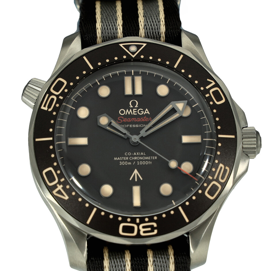 This Omega Seamaster Diver 300m - James Bond Edition 210.92.42.20.01.001 has a brown dial and a fabric strap. This Omega has undergone a thorough inspection of accuracy, functionality and condition at our Omega certified service centre to determine the level of reconditioning required to meet our strict standards. It has also been checked against our records to ensure authenticity. Our watches have a 24-month warranty for your peace of mind, in conjunction with any remaining manufacturer’s warranty from new or from service.