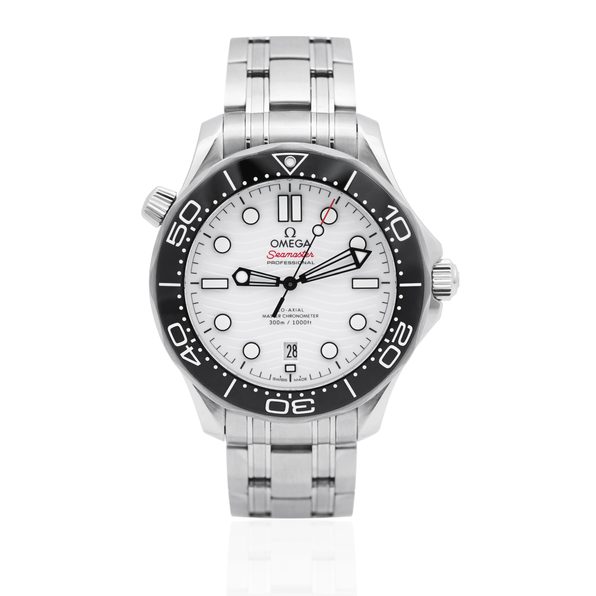 This Omega Seamaster Diver 300m 210.30.42.20.04.001 has a white dial and a bracelet strap. This Omega has undergone a thorough inspection of accuracy, functionality and condition at our Omega certified service centre to determine the level of reconditioning required to meet our strict standards. It has also been checked against our records to ensure authenticity. All our watches have a 24-month warranty for your peace of mind.
