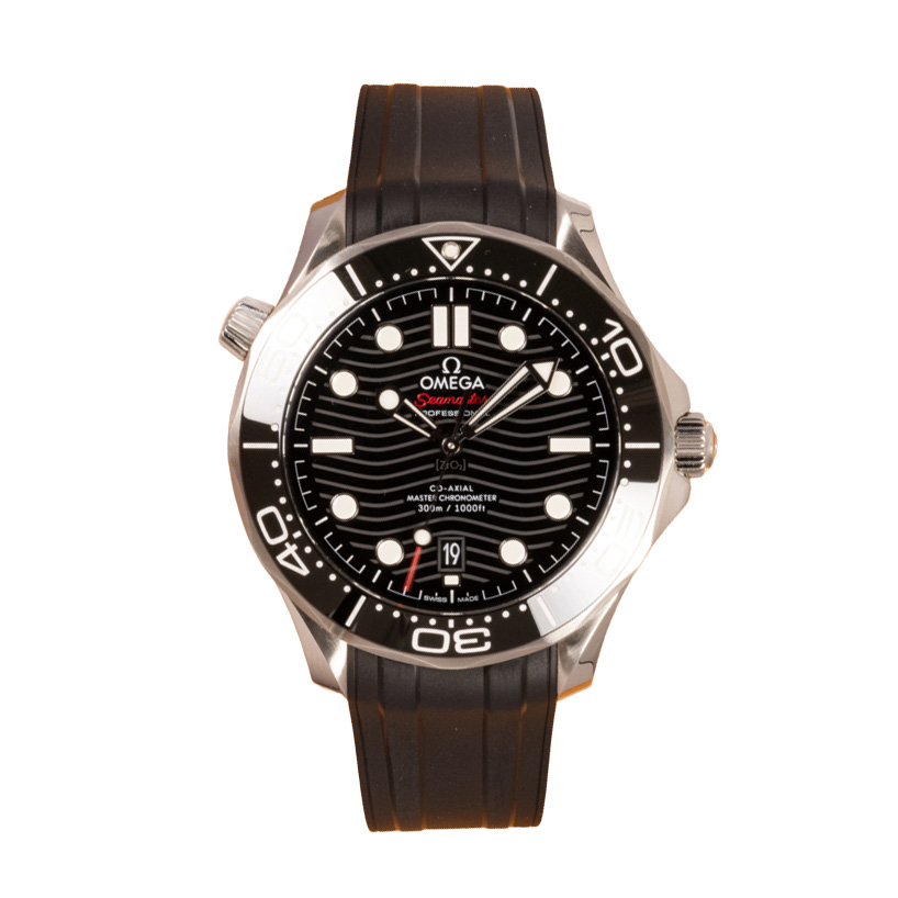 This Omega Seamaster Diver 300m 210.32.42.20.01.001 has a black dial and a rubber strap. This Omega has undergone a thorough inspection of accuracy, functionality and condition at our Omega certified service centre to determine the level of reconditioning required to meet our strict standards. It has also been checked against our records to ensure authenticity. All our watches have a 24-month warranty for your peace of mind.