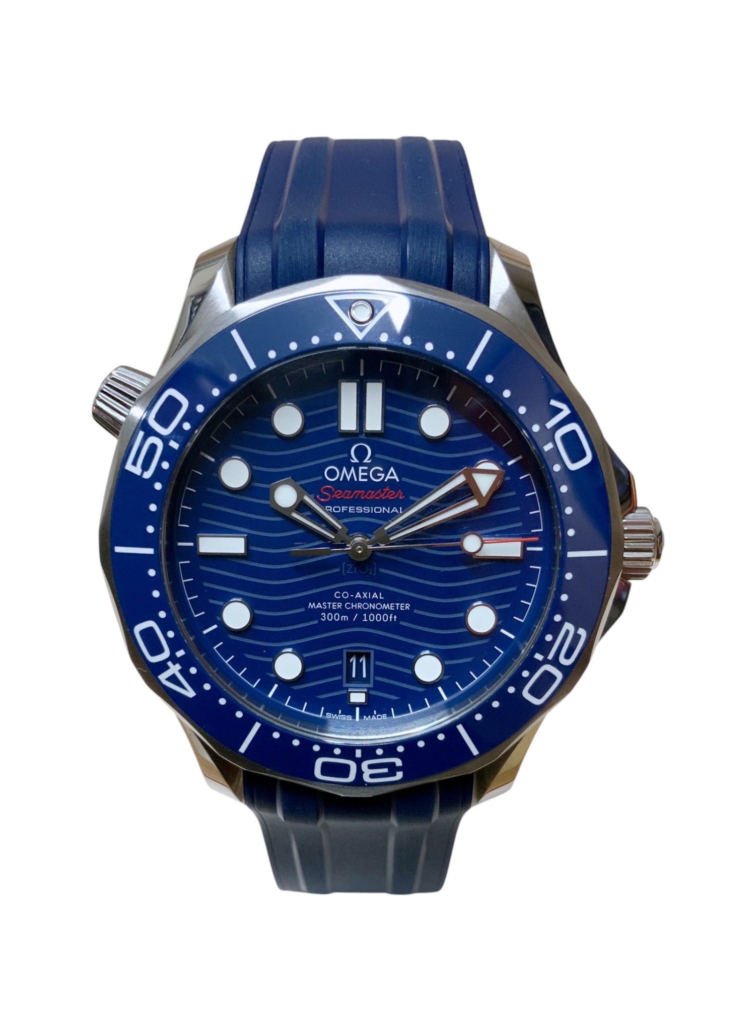 This Omega Seamaster Diver 300m 210.32.42.20.03.001 has a blue dial and a rubber strap. This Omega has undergone a thorough inspection of accuracy, functionality and condition at our Omega certified service centre to determine the level of reconditioning required to meet our strict standards. It has also been checked against our records to ensure authenticity. Our watches have a 24-month warranty for your peace of mind, in conjunction with any remaining manufacturer’s warranty from new or from service.