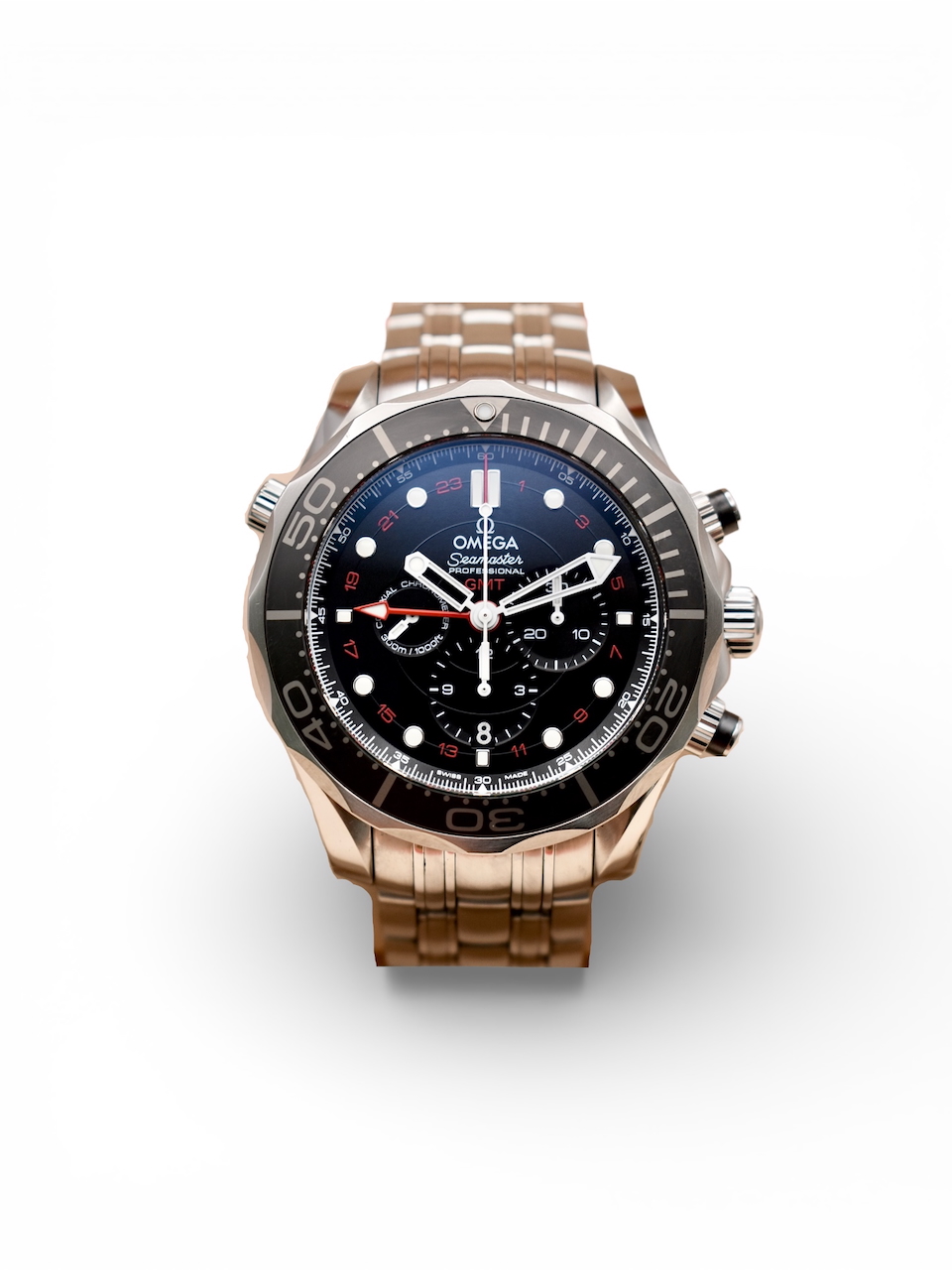 This Omega Seamaster Diver 300m 212.30.44.52.01.001 has a black dial and a bracelet strap. This Omega has undergone a thorough inspection of accuracy, functionality and condition at our Omega certified service centre to determine the level of reconditioning required to meet our strict standards. It has also been checked against our records to ensure authenticity. All our watches have a 24-month warranty for your peace of mind.