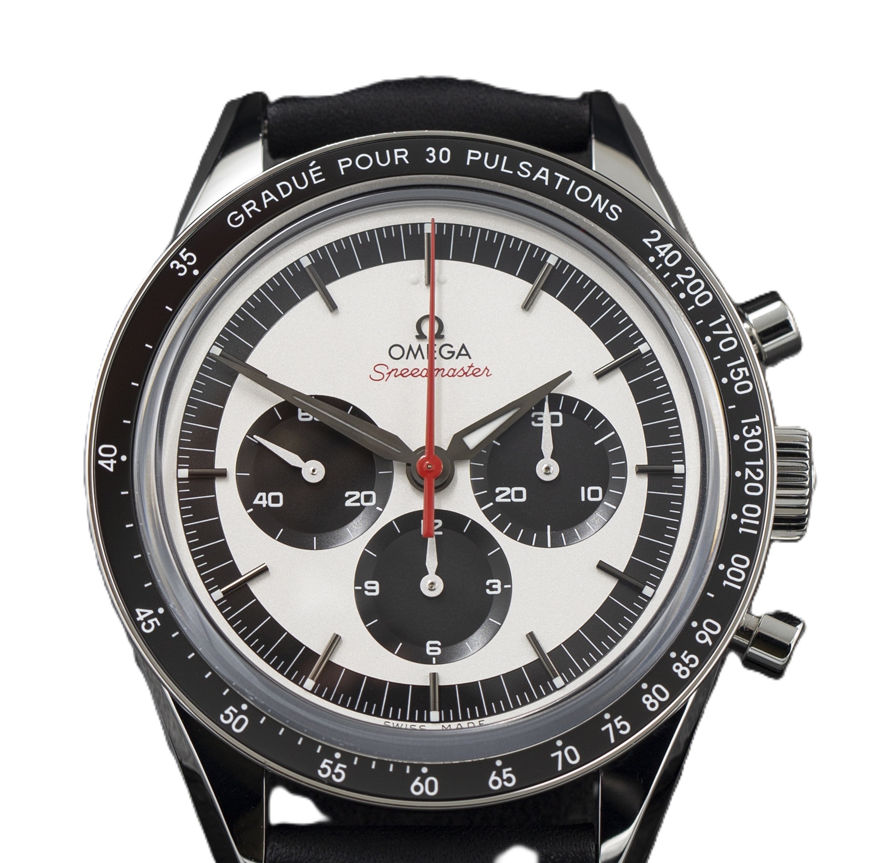 This Omega Speedmaster CK2998 311.32.40.30.02.001 has a silver baton dial and a leather strap. This Omega has undergone a thorough inspection of accuracy, functionality and condition at our Omega certified service centre to determine the level of reconditioning required to meet our strict standards. It has also been checked against our records to ensure authenticity. All our watches have a 24-month warranty for your peace of mind.