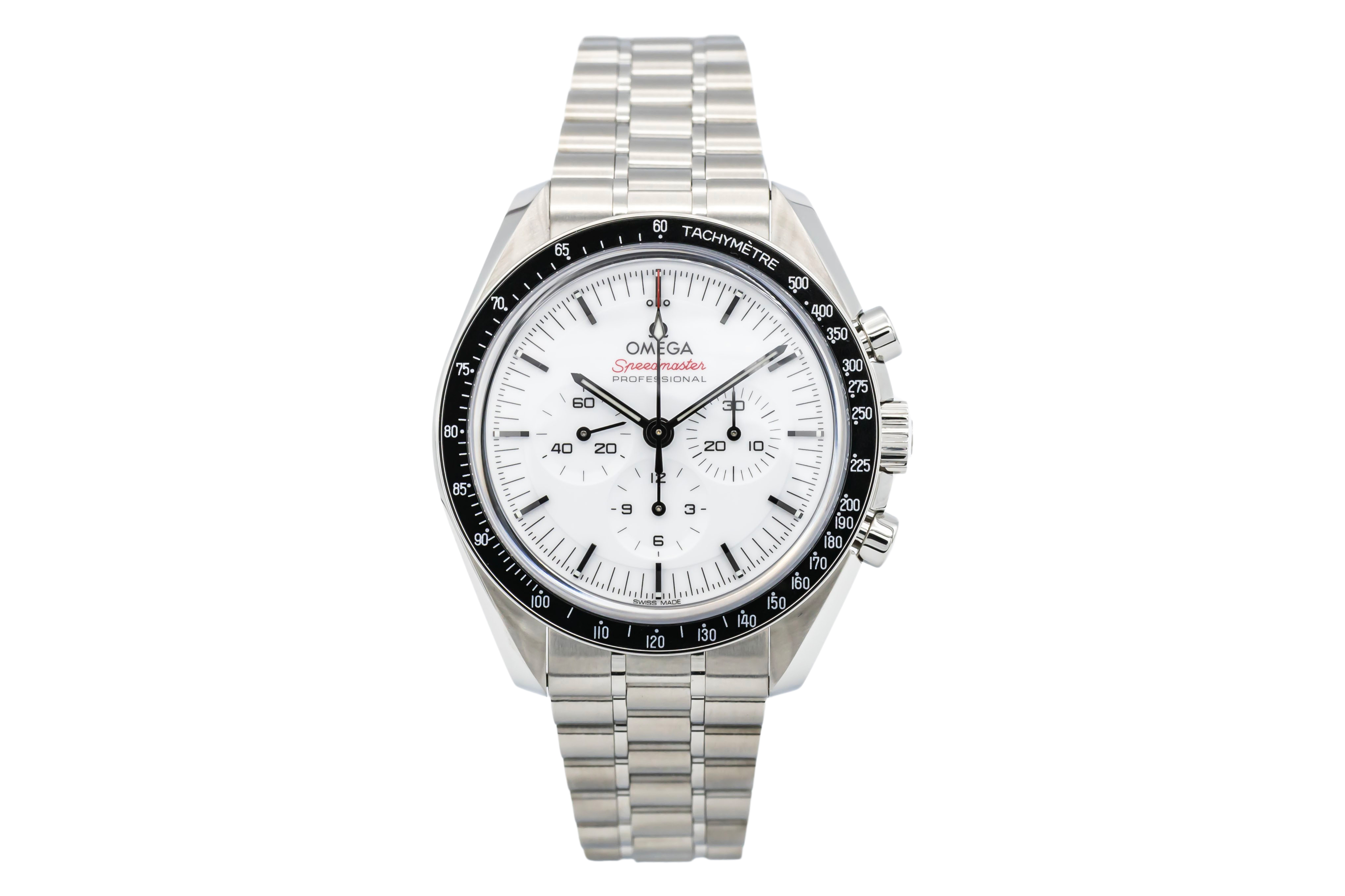 This Omega Speedmaster Moonwatch Professional 310.30.42.50.04.001 has a white baton dial and a bracelet strap. This Omega has undergone a thorough inspection of accuracy, functionality and condition at our Omega certified service centre to determine the level of reconditioning required to meet our strict standards. It has also been checked against our records to ensure authenticity. Our watches have a 24-month warranty for your peace of mind, in conjunction with any remaining manufacturer’s warranty from new or from service.