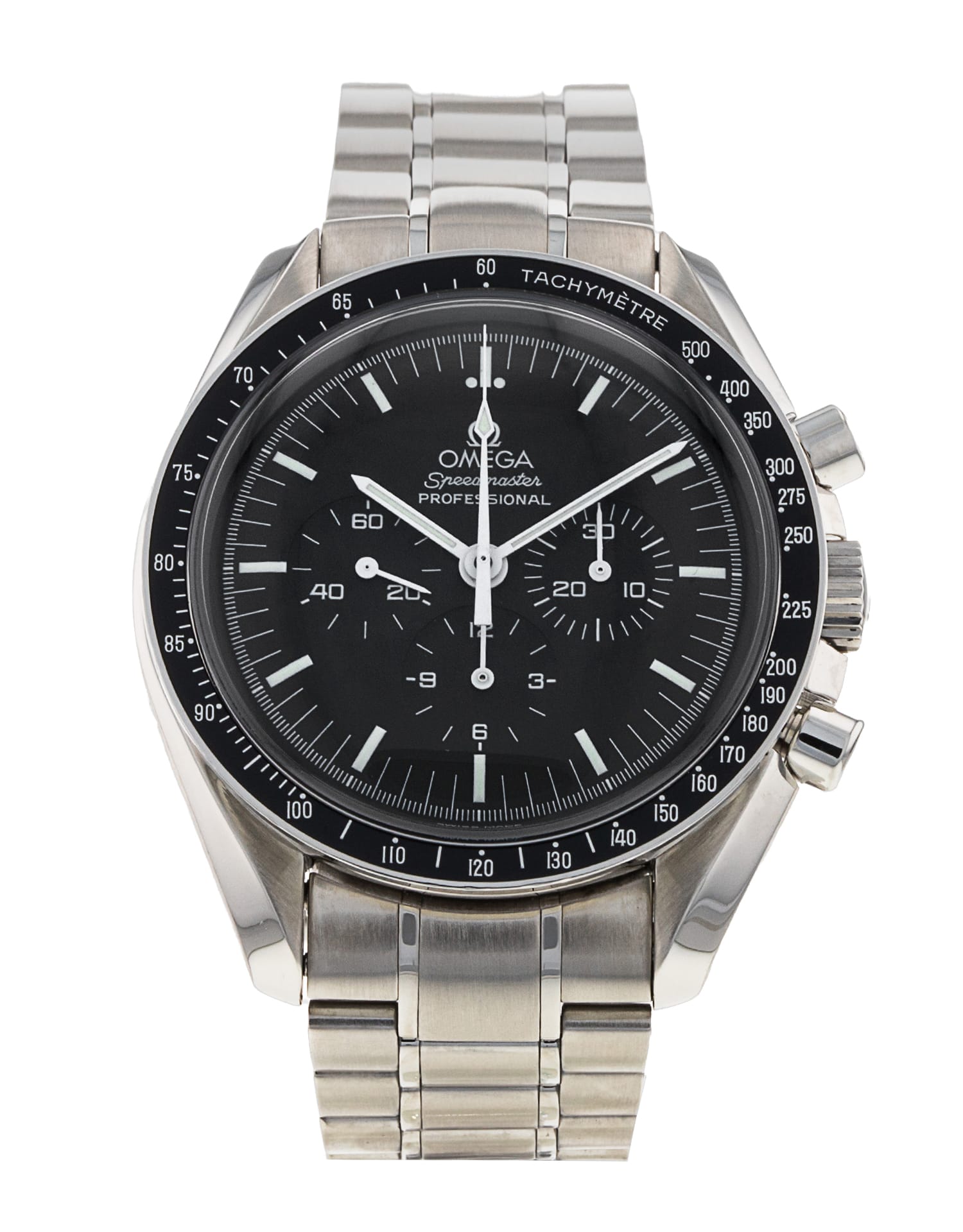 This Omega Speedmaster Moonwatch 3570.50.00 has a black baton dial and a bracelet strap. This Omega has undergone a thorough inspection of accuracy, functionality and condition at our Omega certified service centre to determine the level of reconditioning required to meet our strict standards. It has also been checked against our records to ensure authenticity. All our watches have a 24-month warranty for your peace of mind.
