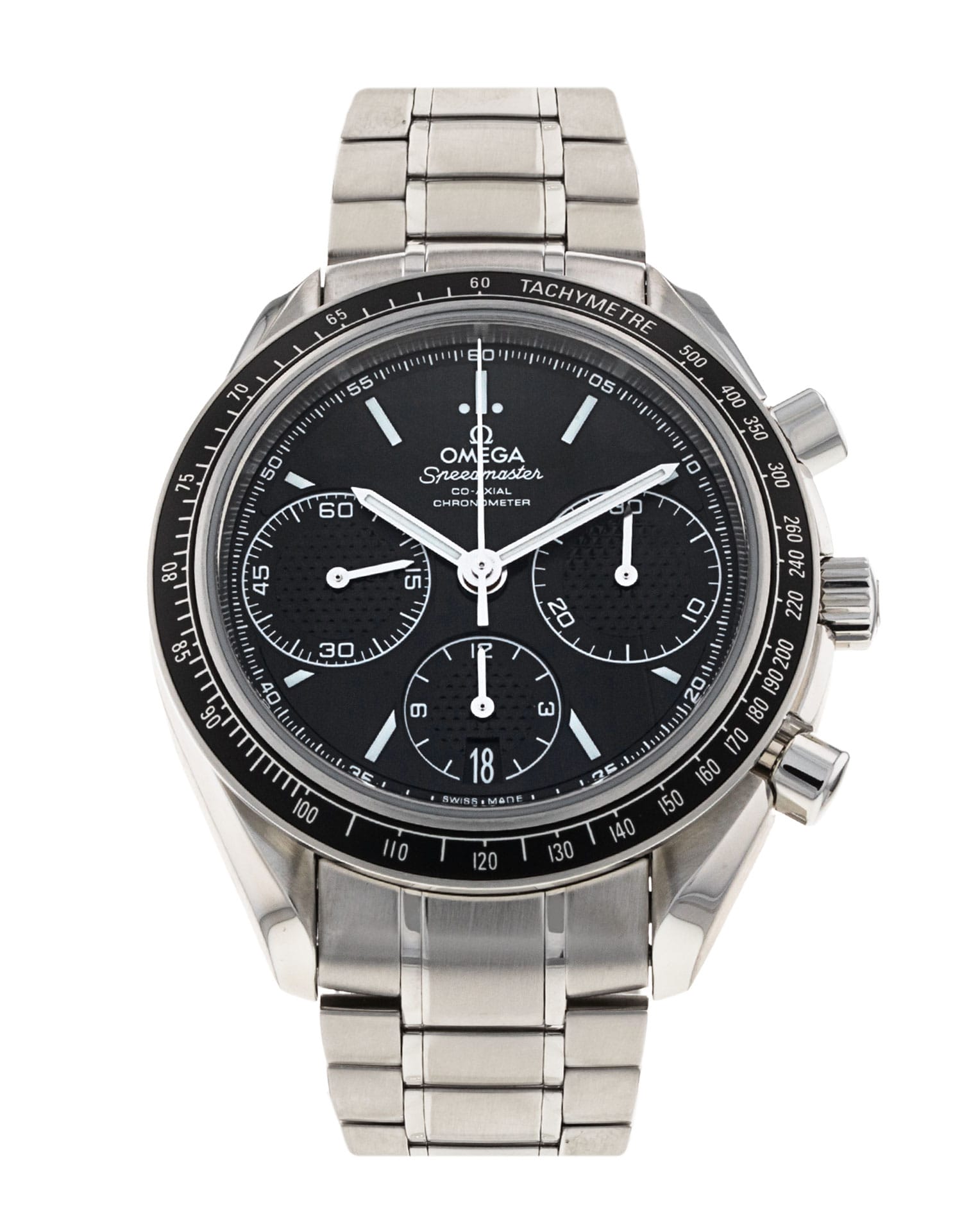 This Omega Speedmaster Racing 326.30.40.50.01.001 has a black baton dial and a bracelet strap. This Omega has undergone a thorough inspection of accuracy, functionality and condition at our Omega certified service centre to determine the level of reconditioning required to meet our strict standards. It has also been checked against our records to ensure authenticity. All our watches have a 24-month warranty for your peace of mind.