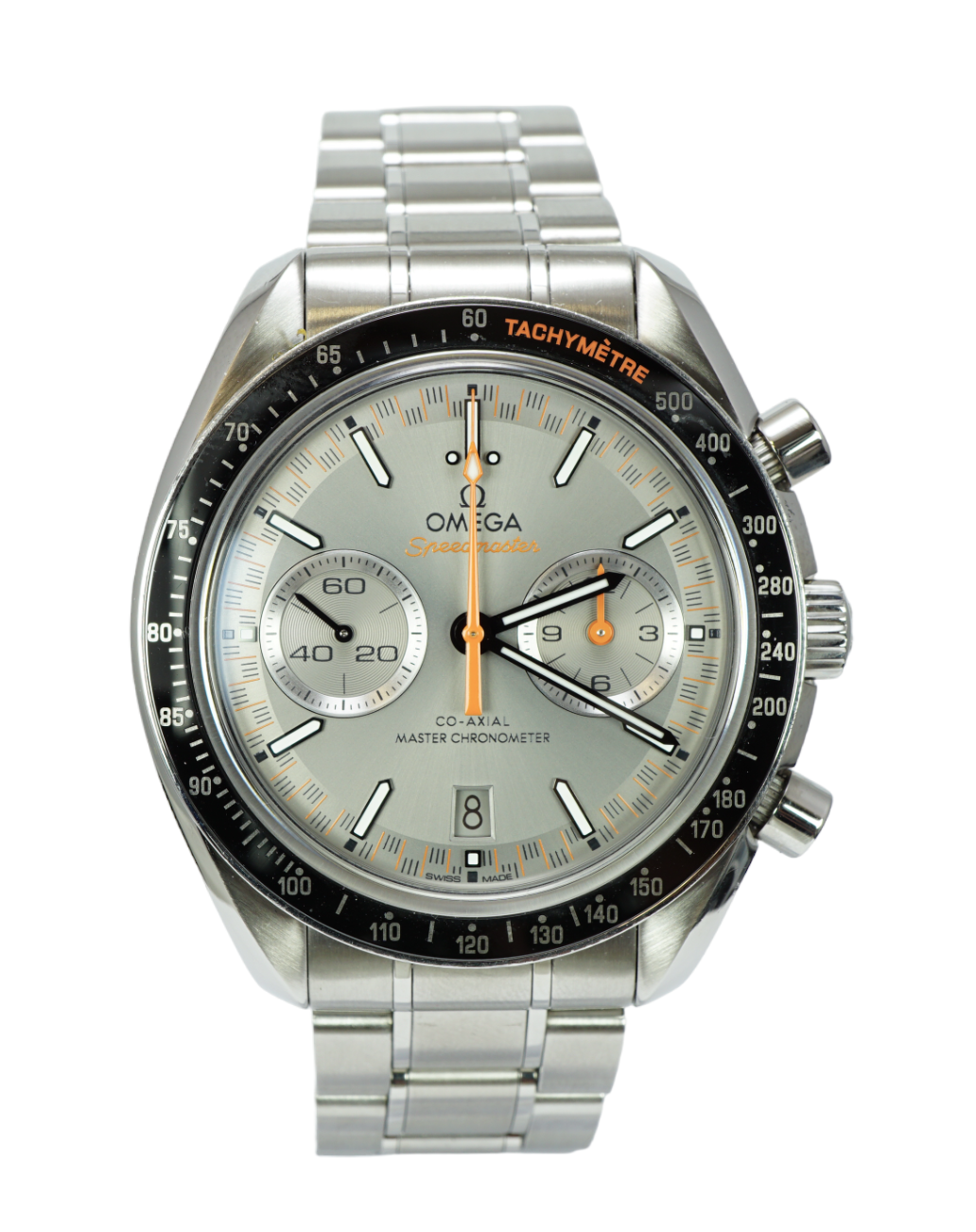 This Omega Speedmaster Racing 329.30.44.51.06.001 has a grey baton dial and a bracelet strap. This Omega has undergone a thorough inspection of accuracy, functionality and condition at our Omega certified service centre to determine the level of reconditioning required to meet our strict standards. It has also been checked against our records to ensure authenticity. All our watches have a 24-month warranty for your peace of mind.