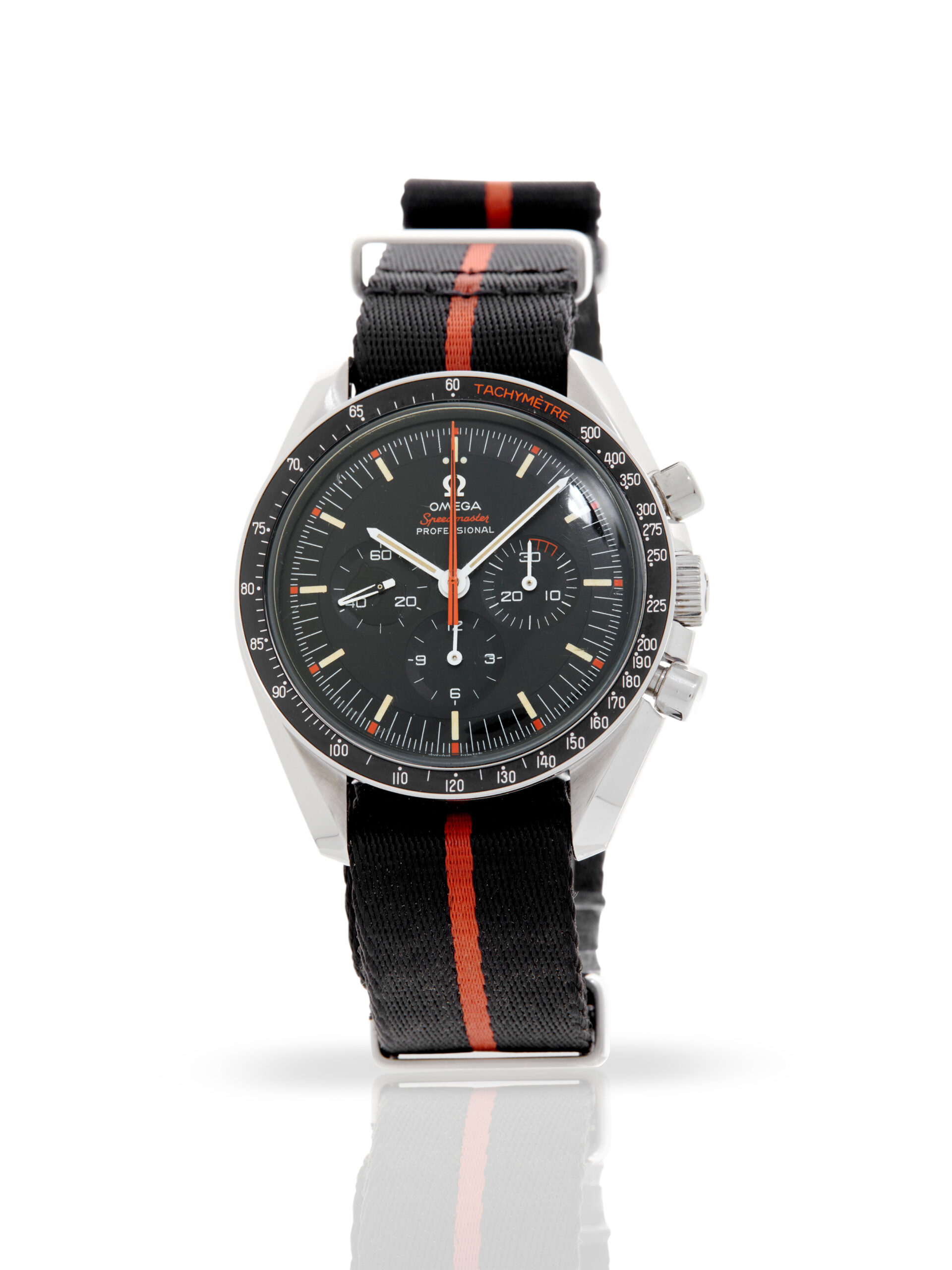 This Omega Speedmaster Ultraman 311.12.42.30.01.001 has a black baton dial and a fabric strap. This Omega has undergone a thorough inspection of accuracy, functionality and condition at our Omega certified service centre to determine the level of reconditioning required to meet our strict standards. It has also been checked against our records to ensure authenticity. All our watches have a 24-month warranty for your peace of mind.