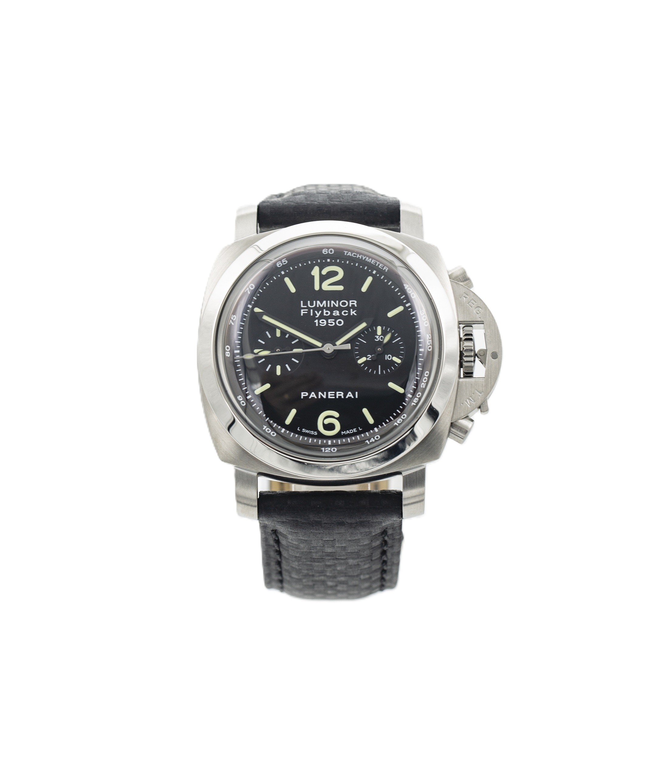 The 212 is a superb example of the Luminor 1950 series, with its large, distinctive steel case famously invented as an evolution of the Radiomir after the end of WWII. Changes include a wider bezel, chunky crown guard and reinforced lugs. The brushed steel and high quality hour-marker lume on the dial is just the beginning of this Luminor, however. It also features a fantastic movement, the COSC-certified OP XIX, visible through the caseback. Modified with a flyback complication, it allows wearers to instantly reset the chronograph without stopping it first.