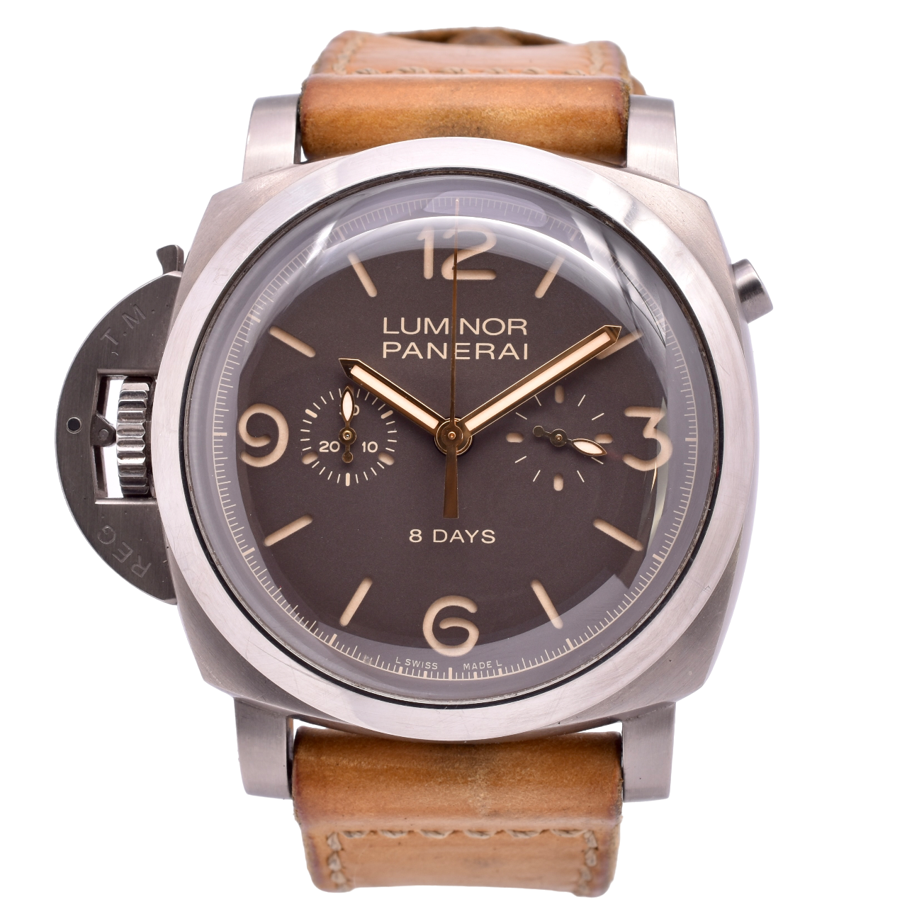 This Panerai Luminor 1950 PAM00579 has a brown quarter arabic dial and a leather strap. This Panerai has undergone a thorough inspection of accuracy, functionality and condition at our Panerai certified service centre to determine the level of reconditioning required to meet our strict standards. It has also been checked against our records to ensure authenticity. Our watches have a 24-month warranty for your peace of mind, in conjunction with any remaining manufacturer’s warranty from new or from service.