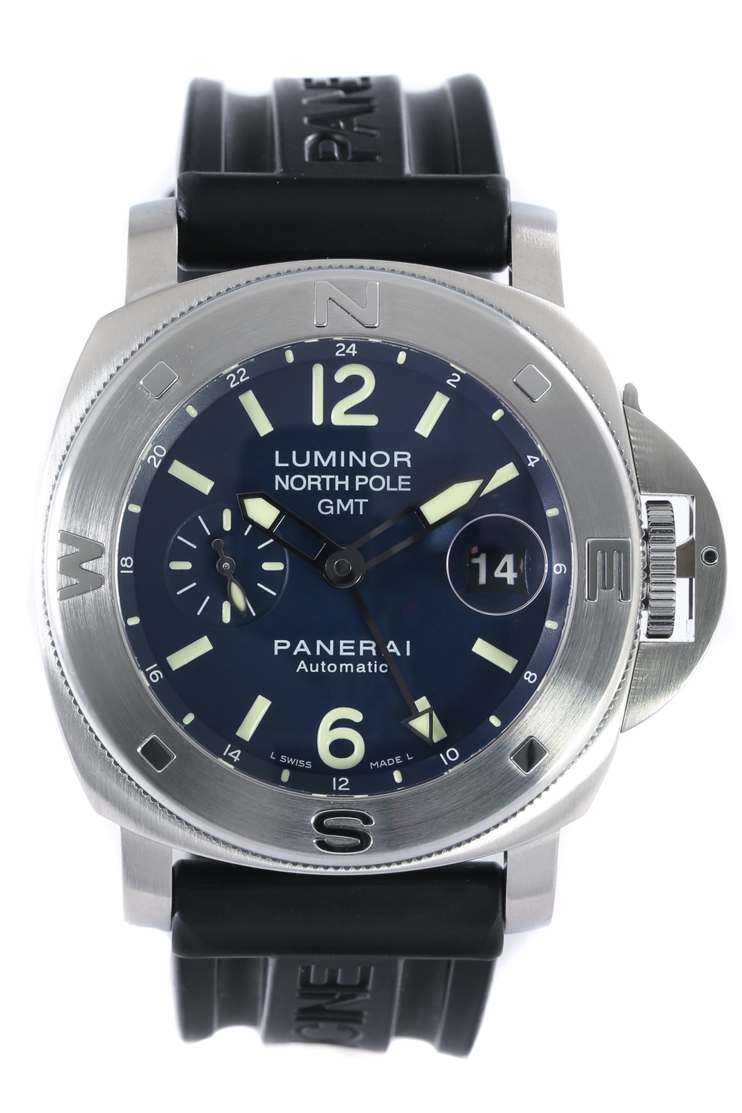This Panerai Luminor GMT PAM00252 has a blue quarter arabic dial and a rubber strap. This Panerai has undergone a thorough inspection of accuracy, functionality and condition at our Panerai certified service centre to determine the level of reconditioning required to meet our strict standards. It has also been checked against our records to ensure authenticity. All our watches have a 24-month warranty for your peace of mind.