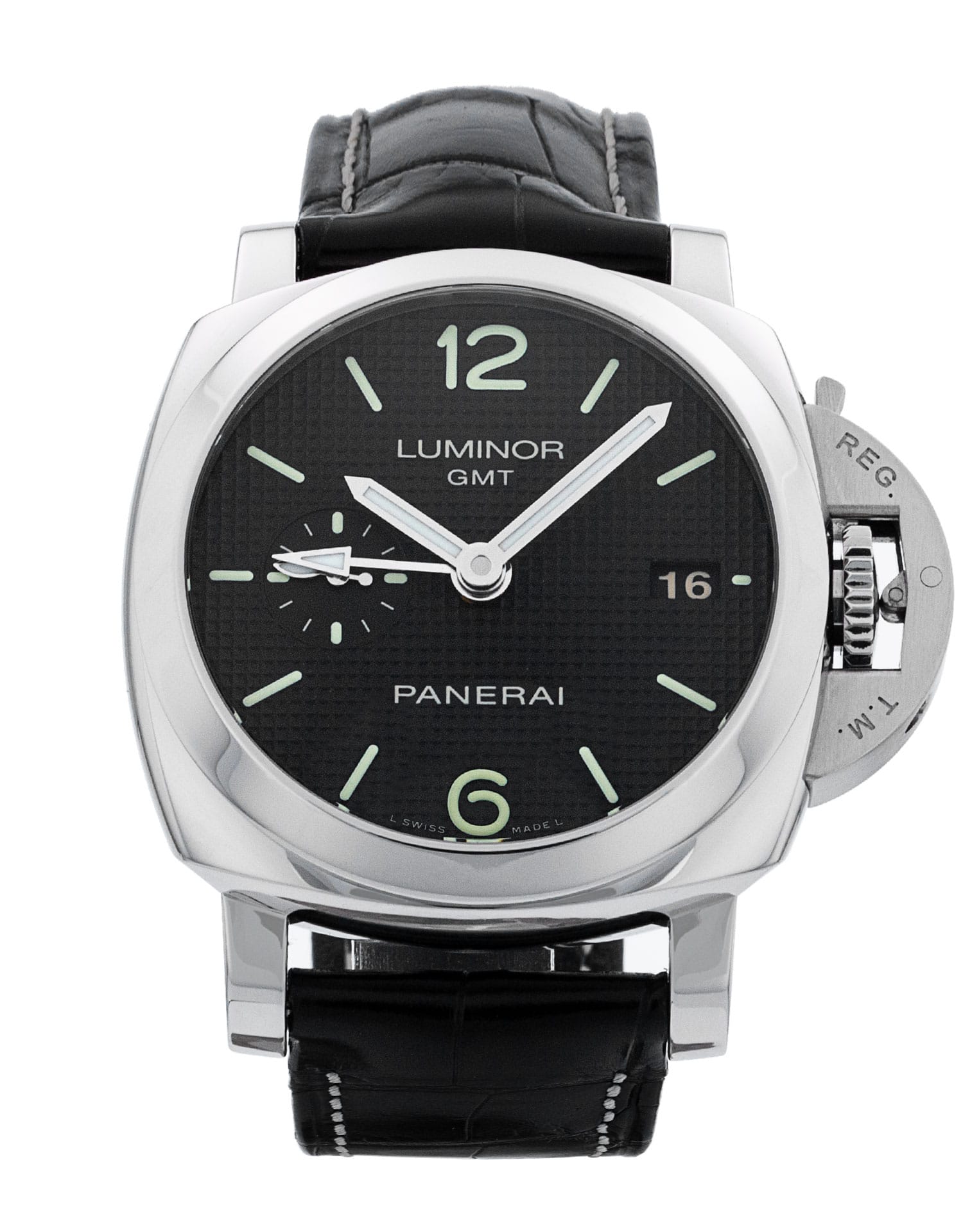This Panerai Luminor GMT PAM00535 has a black baton dial and a leather strap. This Panerai has undergone a thorough inspection of accuracy, functionality and condition at our Panerai certified service centre to determine the level of reconditioning required to meet our strict standards. It has also been checked against our records to ensure authenticity. All our watches have a 24-month warranty for your peace of mind.