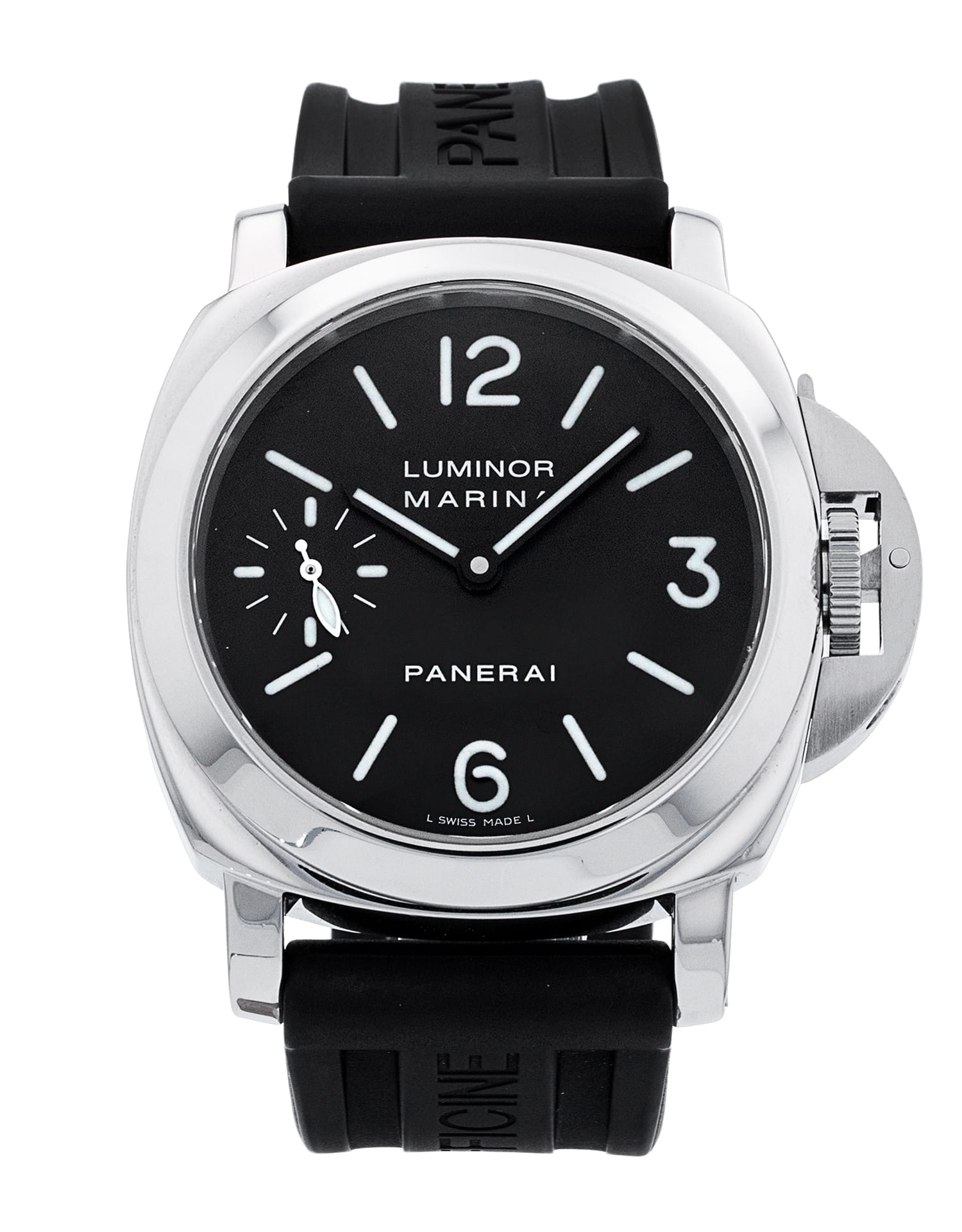 This Panerai Luminor Marina PAM00111 has a black quarter arabic dial and a rubber strap. This Panerai has undergone a thorough inspection of accuracy, functionality and condition at our Panerai certified service centre to determine the level of reconditioning required to meet our strict standards. It has also been checked against our records to ensure authenticity. All our watches have a 24-month warranty for your peace of mind.