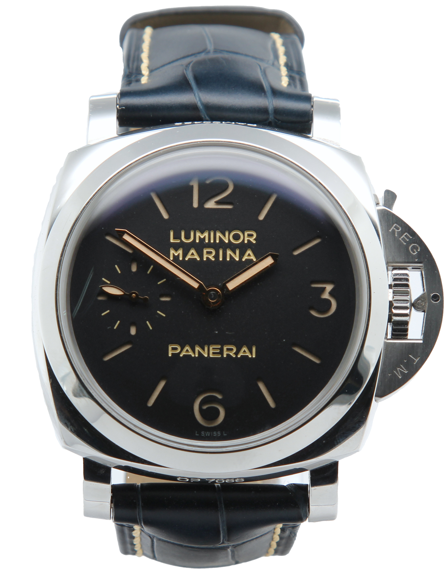 This Panerai Luminor Marina PAM00422 has a black quarter arabic dial and a leather strap. This Panerai has undergone a thorough inspection of accuracy, functionality and condition at our Panerai certified service centre to determine the level of reconditioning required to meet our strict standards. It has also been checked against our records to ensure authenticity. All our watches have a 24-month warranty for your peace of mind.
