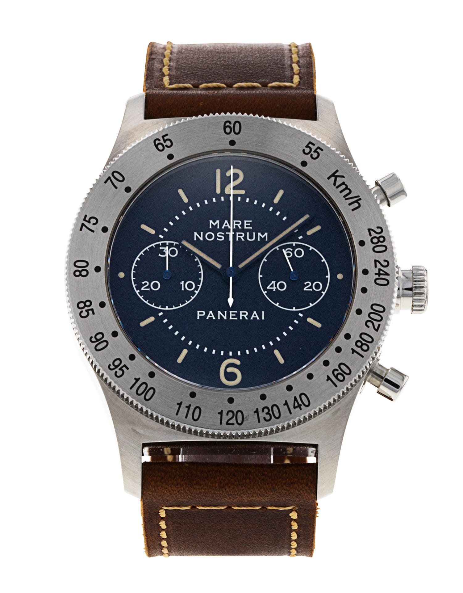 This Panerai Mare Nostrum PAM00716 has a blue baton dial and a leather strap. This Panerai has undergone a thorough inspection of accuracy, functionality and condition at our Panerai certified service centre to determine the level of reconditioning required to meet our strict standards. It has also been checked against our records to ensure authenticity. All our watches have a 24-month warranty for your peace of mind.