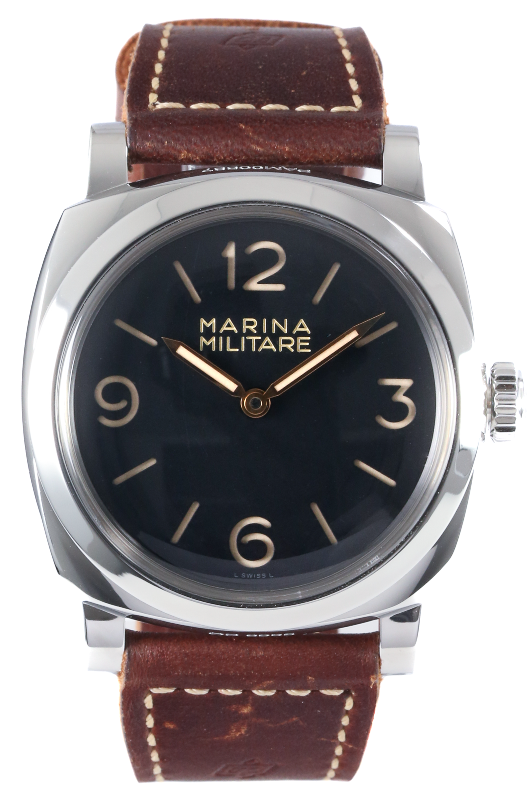 This Panerai Radiomir 1940 PAM00587 has a black dial and a leather strap. This Panerai has undergone a thorough inspection of accuracy, functionality and condition at our Panerai certified service centre to determine the level of reconditioning required to meet our strict standards. It has also been checked against our records to ensure authenticity. All our watches have a 24-month warranty for your peace of mind.