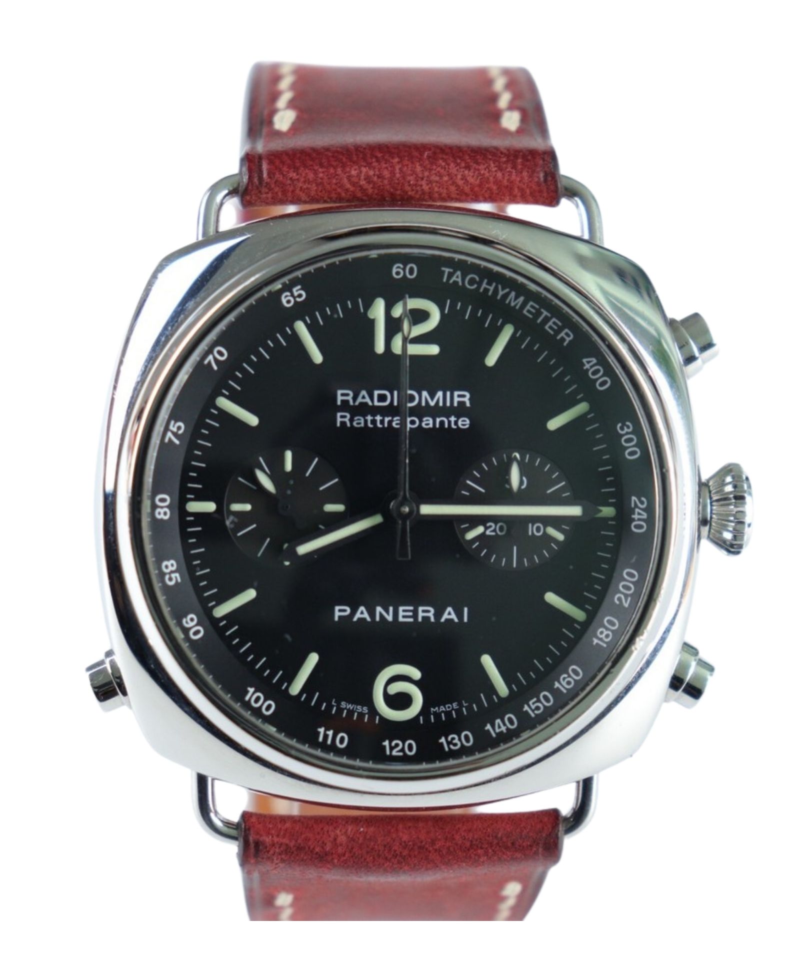 This Panerai Radiomir Automatic PAM00214 has a black baton dial and a leather strap. This Panerai has undergone a thorough inspection of accuracy, functionality and condition at our Panerai certified service centre to determine the level of reconditioning required to meet our strict standards. It has also been checked against our records to ensure authenticity. All our watches have a 24-month warranty for your peace of mind.