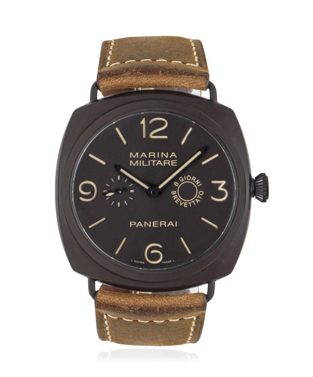 This special limited edition Panerai Luminor pays tribute to some of the brand's vintage early 20th century models when Panerai was making watches for the Italian and Egyptian Navies. At this time, certain rare models had the words “Marina Militare” and “8 giorni brevettato” (“8 days patented”), which have been replicated here. In addition, the 339 was the first watch to feature Panerai's special ceramic case material. It's called “composite” instead of ceramic to differentiate it from the ceramics of other watchmakers, which are typically made with a zirconium base. Panerai's is made by electrochemical processes using aluminium, making it harder and tougher than other ceramics, not to mention lighter than even titanium. The in-house P.2000/7 movement has an impressive power reserve of eight days, a nod to the original "8 giorni brevettato".