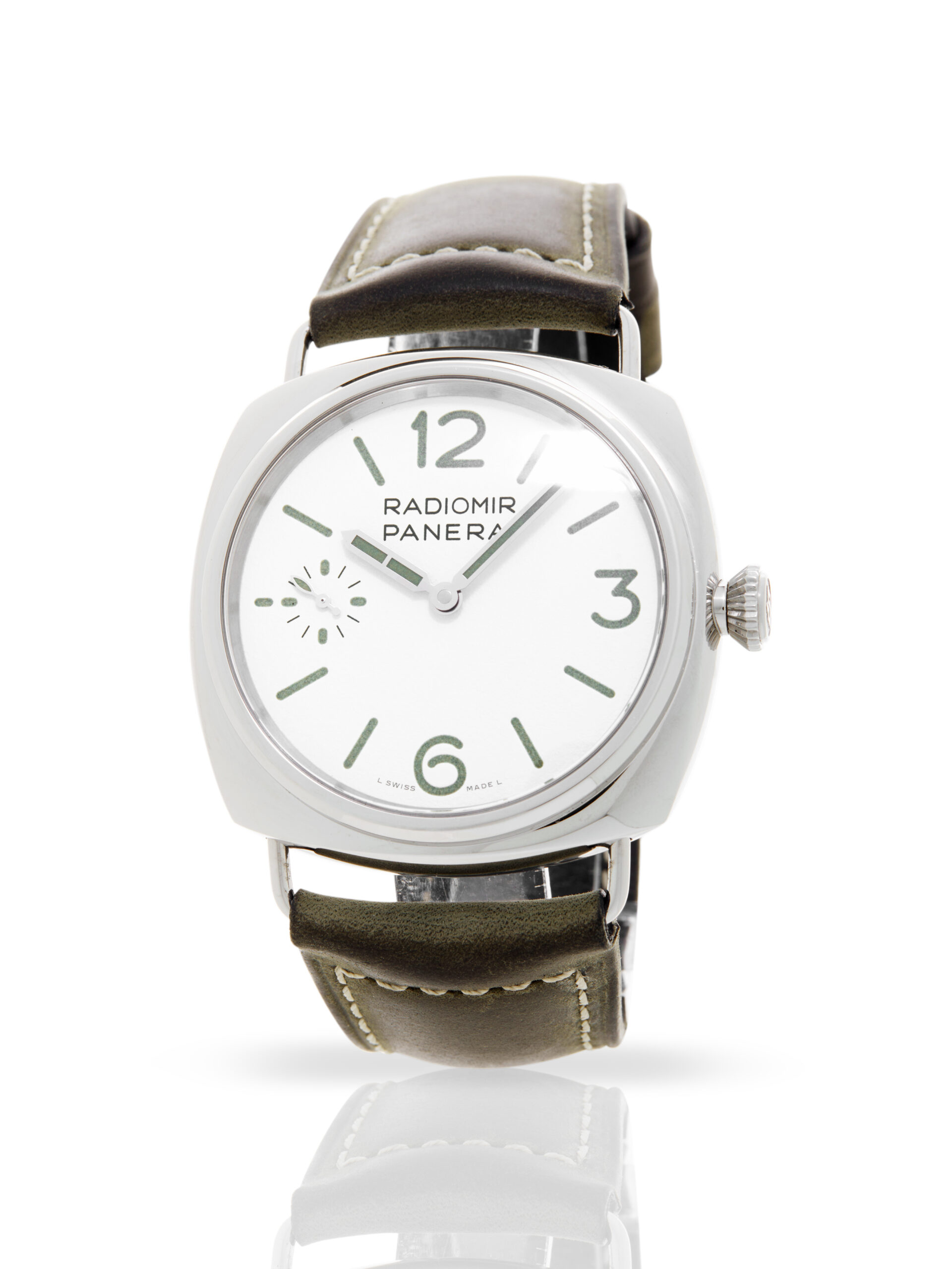 This Panerai Radiomir Manual PAM01384 has a white quarter arabic dial and a leather strap. This Panerai has undergone a thorough inspection of accuracy, functionality and condition at our Panerai certified service centre to determine the level of reconditioning required to meet our strict standards. It has also been checked against our records to ensure authenticity. Our watches have a 24-month warranty for your peace of mind, in conjunction with any remaining manufacturer’s warranty from new or from service.