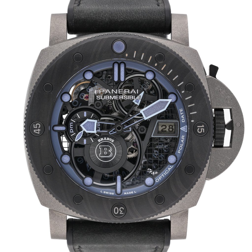 This Panerai Submersible PAM01241 has a skeleton dial and a leather strap. This Panerai has undergone a thorough inspection of accuracy, functionality and condition at our Panerai certified service centre to determine the level of reconditioning required to meet our strict standards. It has also been checked against our records to ensure authenticity. All our watches have a 24-month warranty for your peace of mind.