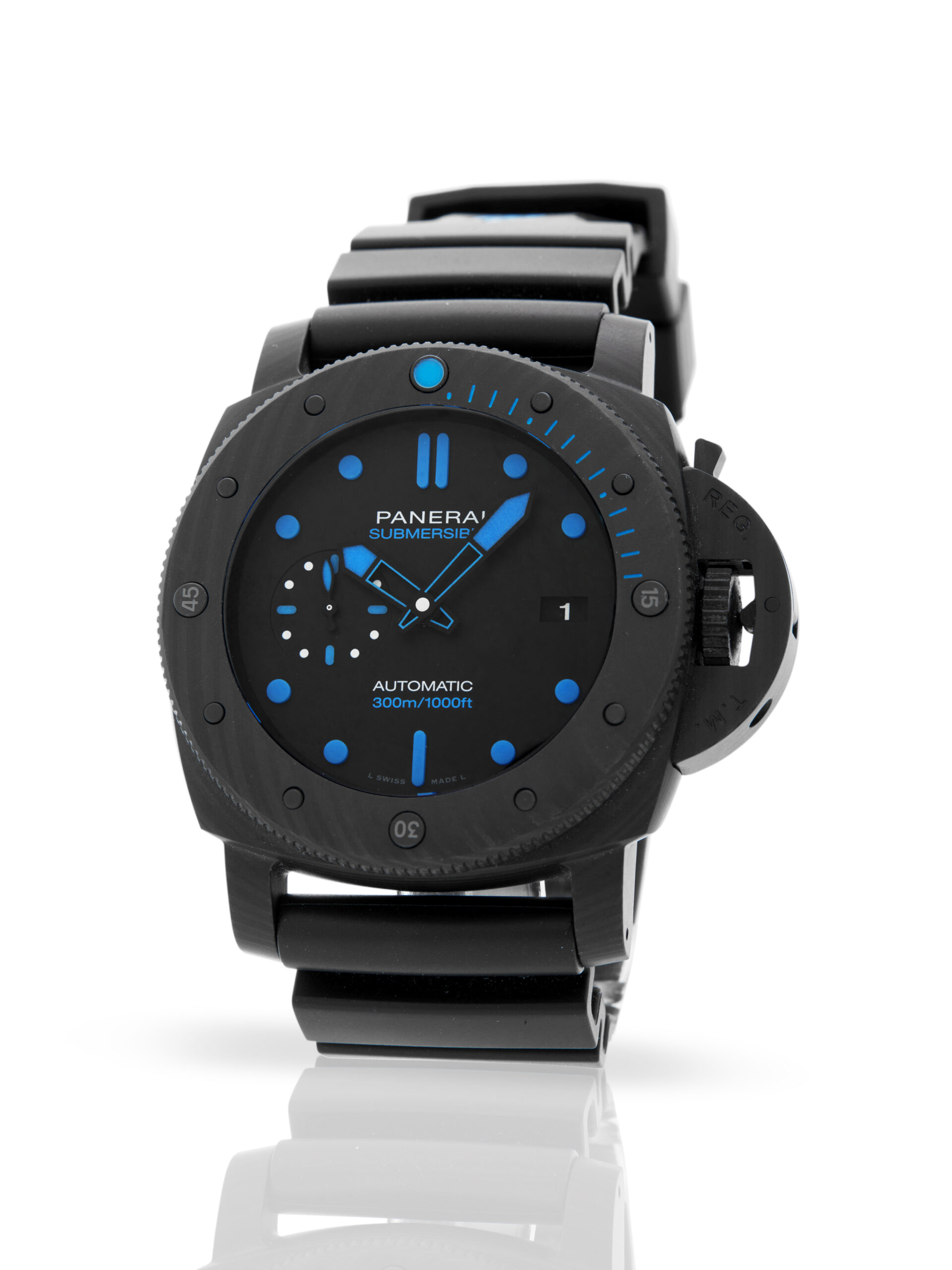 This Panerai Submersible PAM01616 has a black dial and a rubber strap. This Panerai has undergone a thorough inspection of accuracy, functionality and condition at our Panerai certified service centre to determine the level of reconditioning required to meet our strict standards. It has also been checked against our records to ensure authenticity. Our watches have a 24-month warranty for your peace of mind, in conjunction with any remaining manufacturer’s warranty from new or from service.
