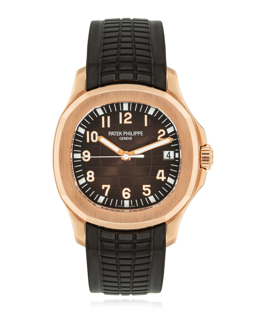 This Patek Philippe Aquanaut 5167R-001 has a brown arabic dial and a rubber strap. This Patek Philippe has undergone a thorough inspection of water resistance, accuracy, functionality and condition to determine the level of reconditioning required to meet our strict standards. It has also been referenced against technical documents and manufacturer records where available to ensure authenticity and a clean history. All our watches have a 24-month warranty for your peace of mind.