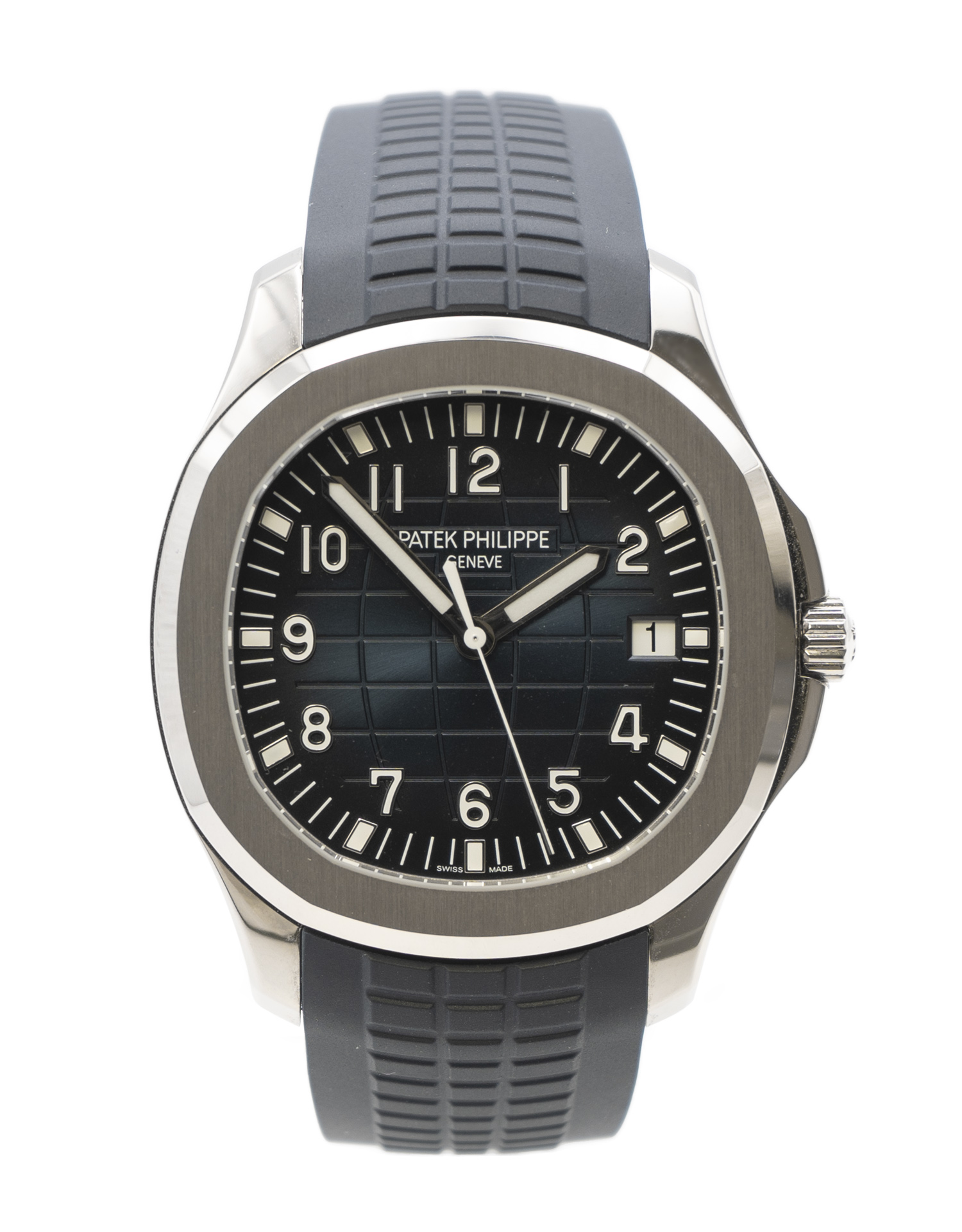 This Patek Philippe Aquanaut 5168G-001 has a blue arabic dial and a rubber strap. This Patek Philippe has undergone a thorough inspection of water resistance, accuracy, functionality and condition to determine the level of reconditioning required to meet our strict standards. It has also been referenced against technical documents and manufacturer records where available to ensure authenticity and a clean history. All our watches have a 24-month warranty for your peace of mind.