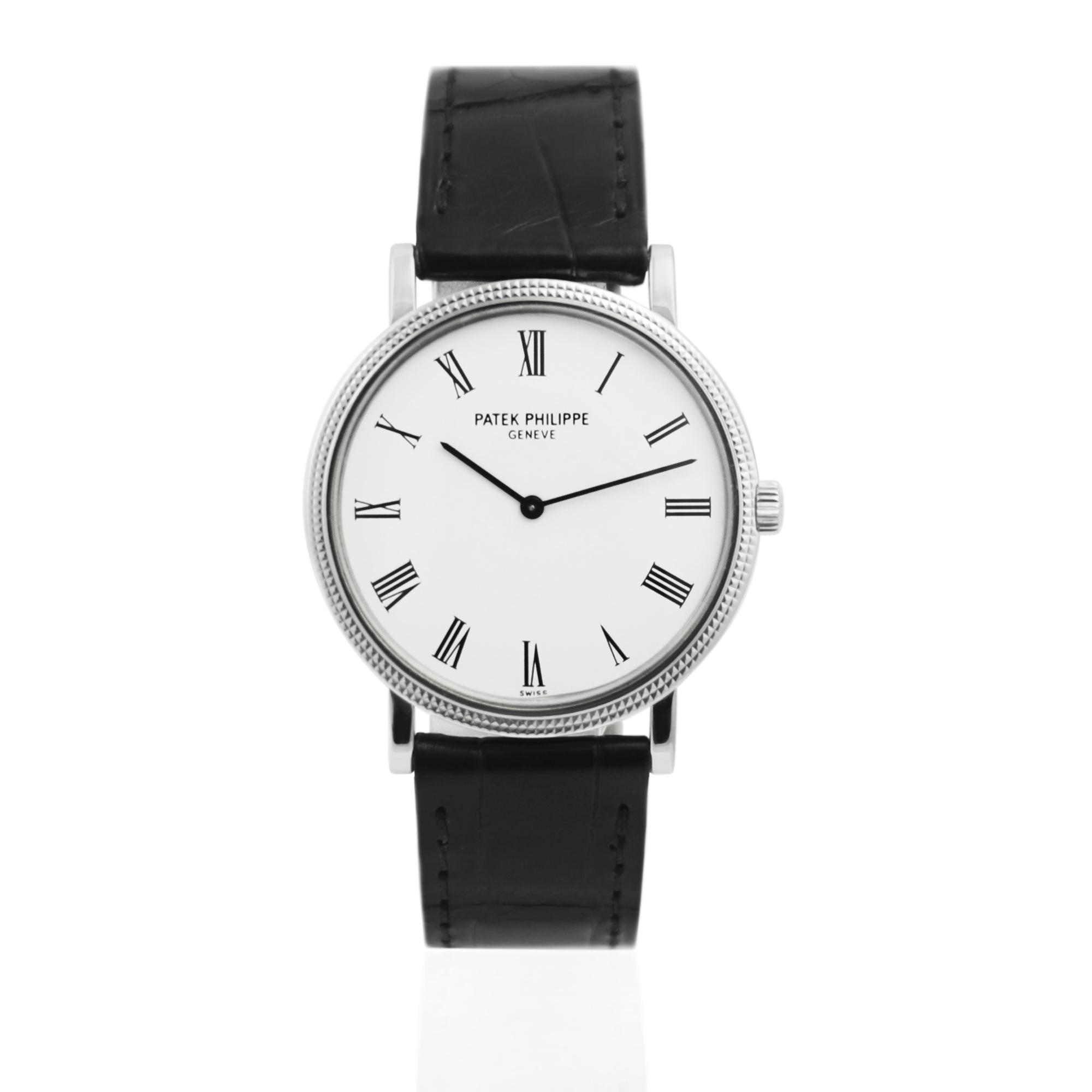 This Patek Philippe Calatrava 5120G-001 has a white roman numeral dial and a leather strap. This Patek Philippe has undergone a thorough inspection of water resistance, accuracy, functionality and condition to determine the level of reconditioning required to meet our strict standards. It has also been referenced against technical documents and manufacturer records where available to ensure authenticity and a clean history. All our watches have a 24-month warranty for your peace of mind.