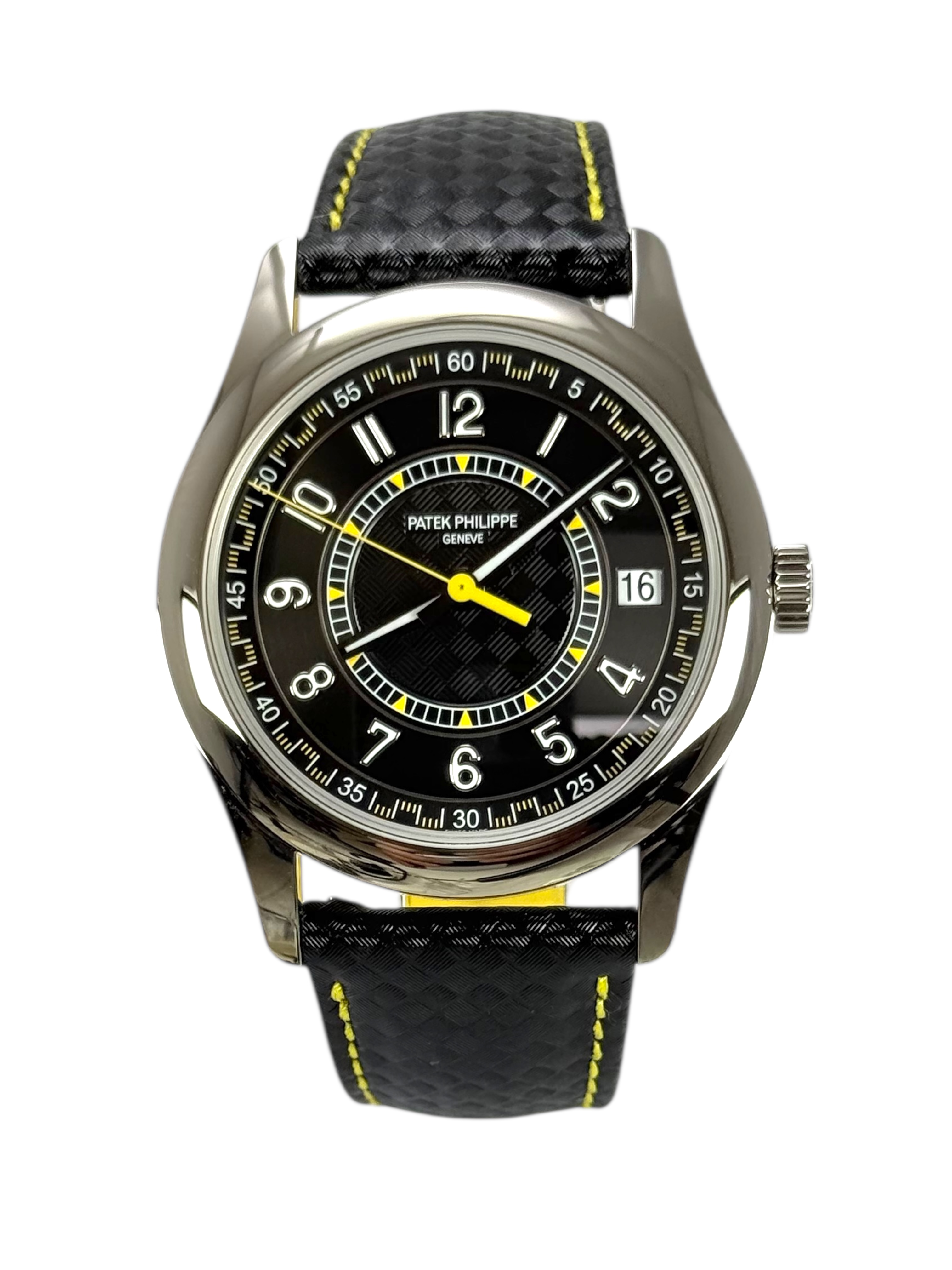 This Patek Philippe Calatrava 6007G-001 has a black dial and a leather strap. This Patek Philippe has undergone a thorough inspection of water resistance, accuracy, functionality and condition to determine the level of reconditioning required to meet our strict standards. It has also been referenced against technical documents and manufacturer records where available to ensure authenticity and a clean history. All our watches have a 24-month warranty for your peace of mind.