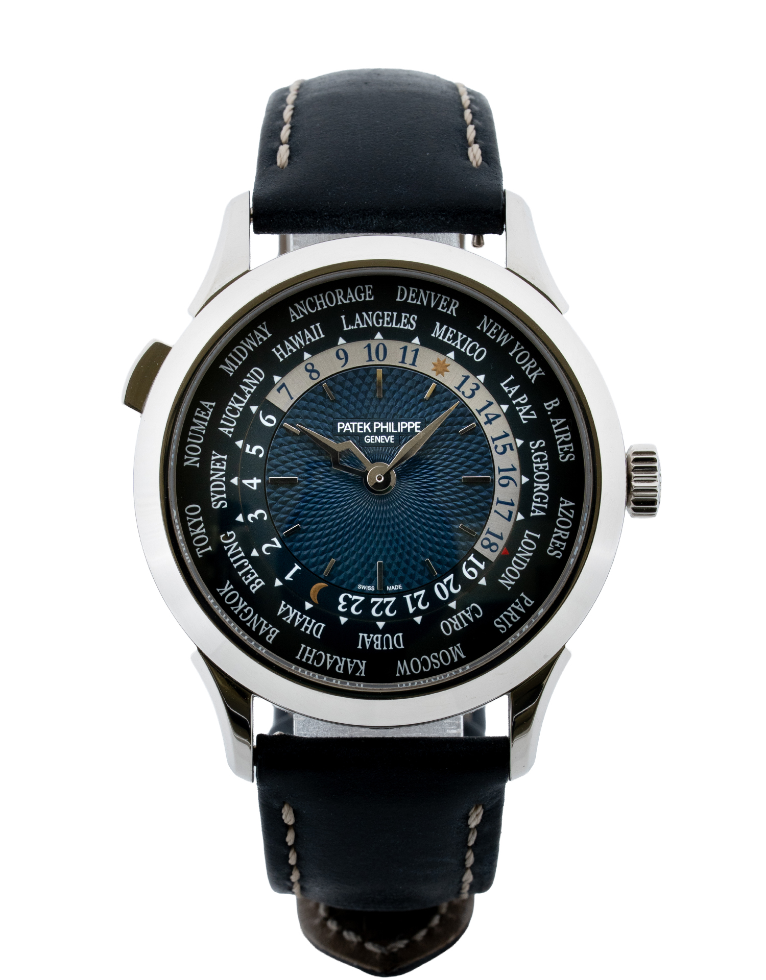 This Patek Philippe Complications 5230P-001 has a blue dial and a leather strap. This Patek Philippe has undergone a thorough inspection of water resistance, accuracy, functionality and condition to determine the level of reconditioning required to meet our strict standards. It has also been referenced against technical documents and manufacturer records where available to ensure authenticity and a clean history. All our watches have a 24-month warranty for your peace of mind.