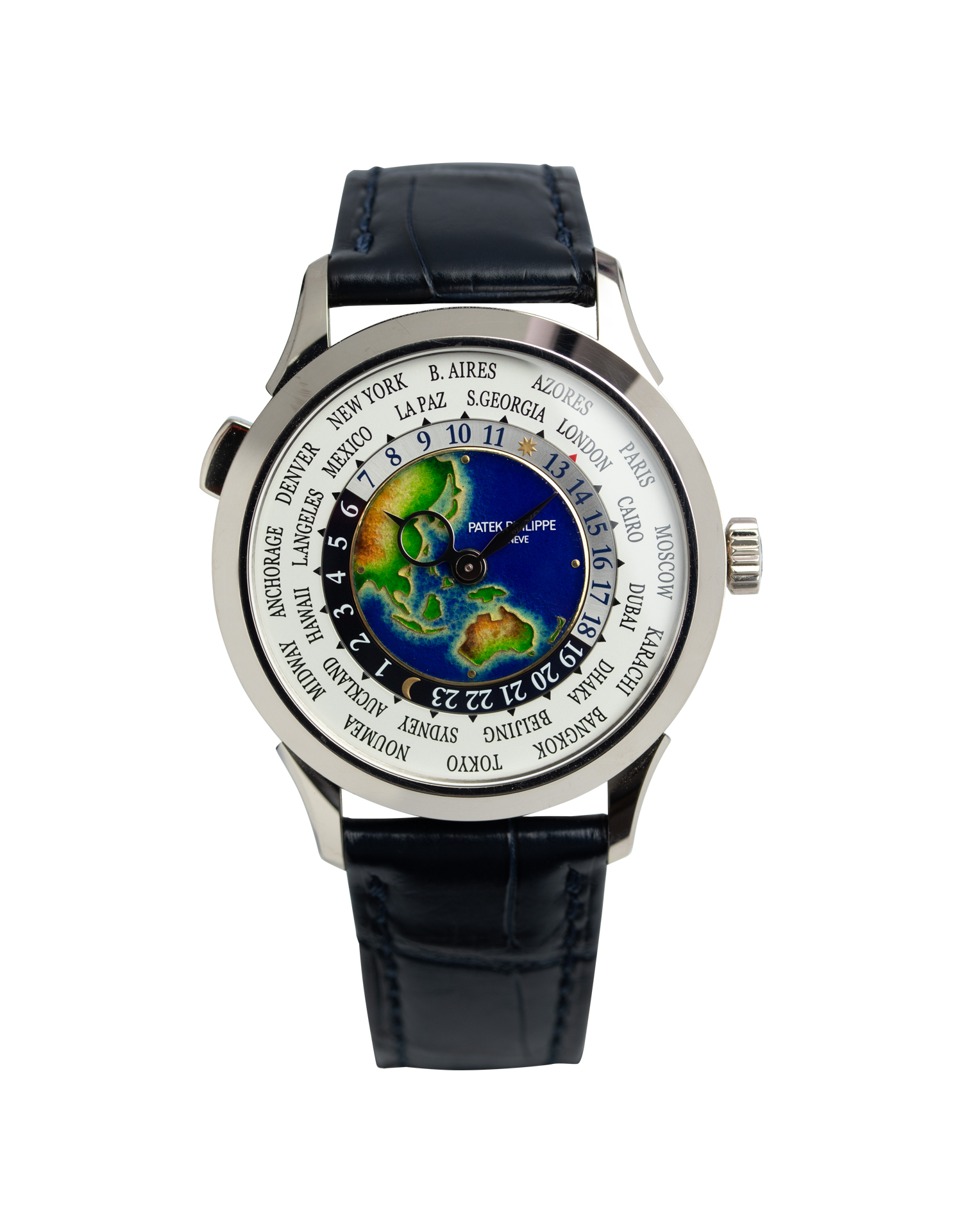 This Patek Philippe Complications 5231G-001 has a blue dial and a leather strap. This Patek Philippe has undergone a thorough inspection of water resistance, accuracy, functionality and condition to determine the level of reconditioning required to meet our strict standards. It has also been referenced against technical documents and manufacturer records where available to ensure authenticity and a clean history. All our watches have a 24-month warranty for your peace of mind.