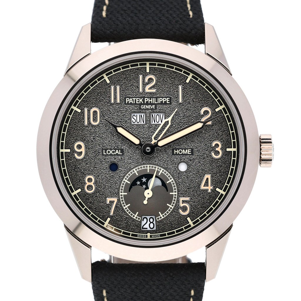 This Patek Philippe Complications 5326G-001 has a grey arabic dial and a leather strap. This Patek Philippe has undergone a thorough inspection of water resistance, accuracy, functionality and condition to determine the level of reconditioning required to meet our strict standards. It has also been referenced against technical documents and manufacturer records where available to ensure authenticity and a clean history. All our watches have a 24-month warranty for your peace of mind.