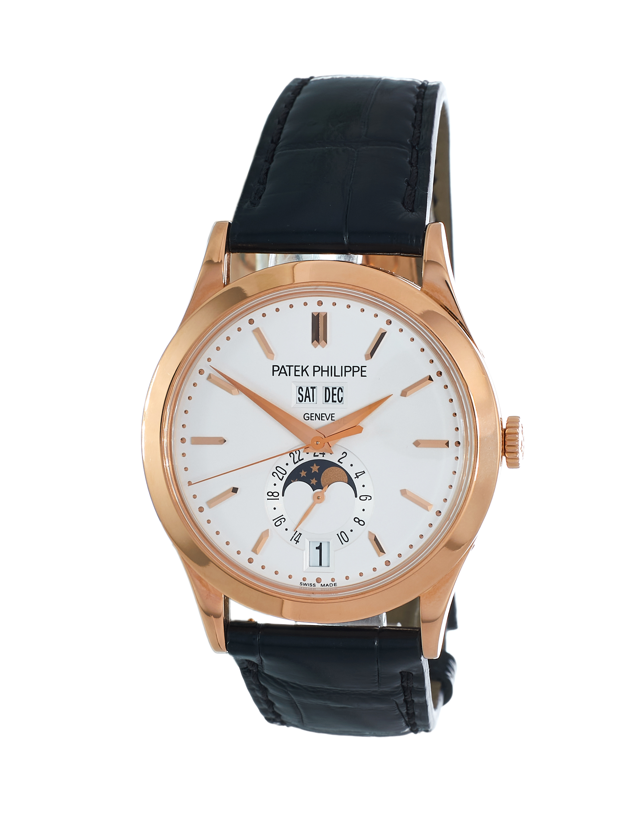 The Patek Philippe 5396 features several great complications, chief among which is surely the annual calendar. Patek revolutionised calendar complications when it invented the annual calendar in the 1990s, a complication with almost as much complexity and convenience as its perpetual counterpart, but at a much lower price and only needing to be set once per year. Here, it is displayed via three small, instant-jumping and remarkably easy-to-read windows: date at 6 o'clock, day and month above the central hands. These are nicely complemented by a moonphase and 24-hour subdial in the lower half of the dial. Supremely elegant and assured, this watch combines the best of Patek's mechanical and aesthetic mastery.