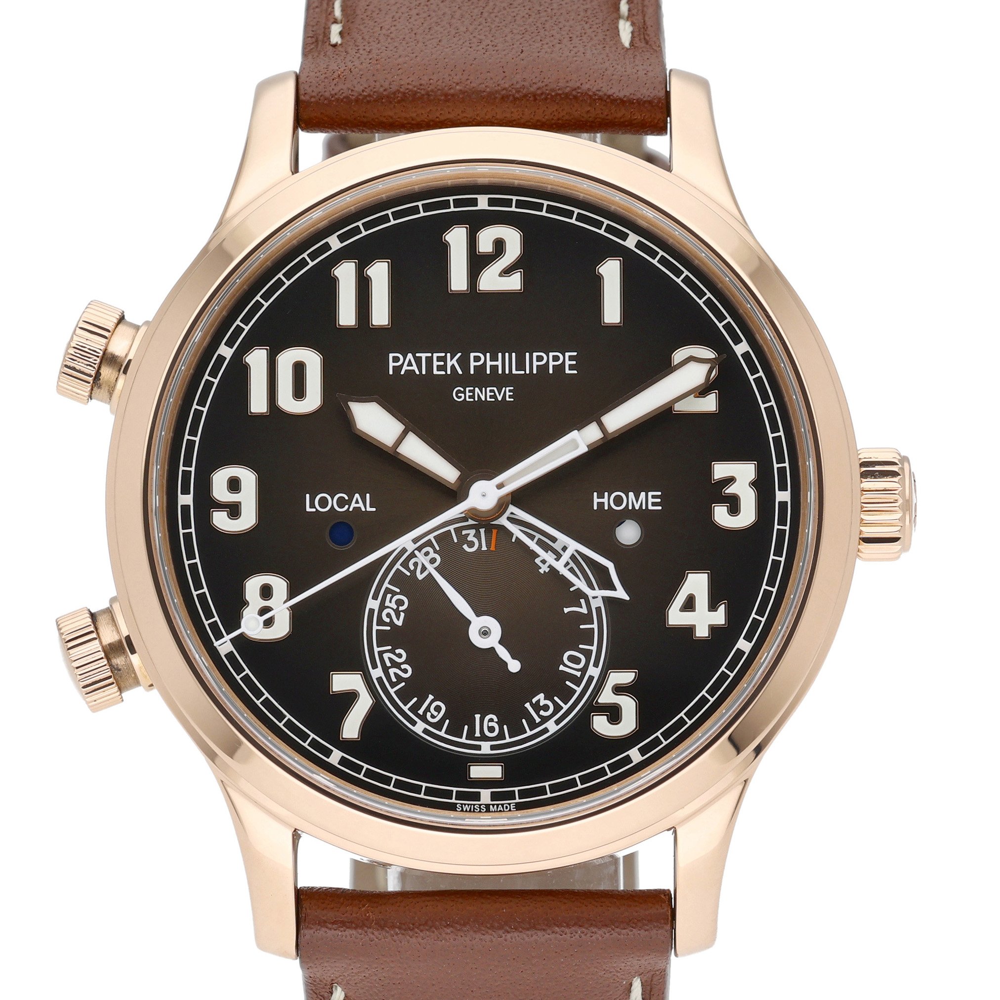 This Patek Philippe Complications 5524R-001 has a brown arabic dial and a leather strap. This Patek Philippe has undergone a thorough inspection of water resistance, accuracy, functionality and condition to determine the level of reconditioning required to meet our strict standards. It has also been referenced against technical documents and manufacturer records where available to ensure authenticity and a clean history. All our watches have a 24-month warranty for your peace of mind.