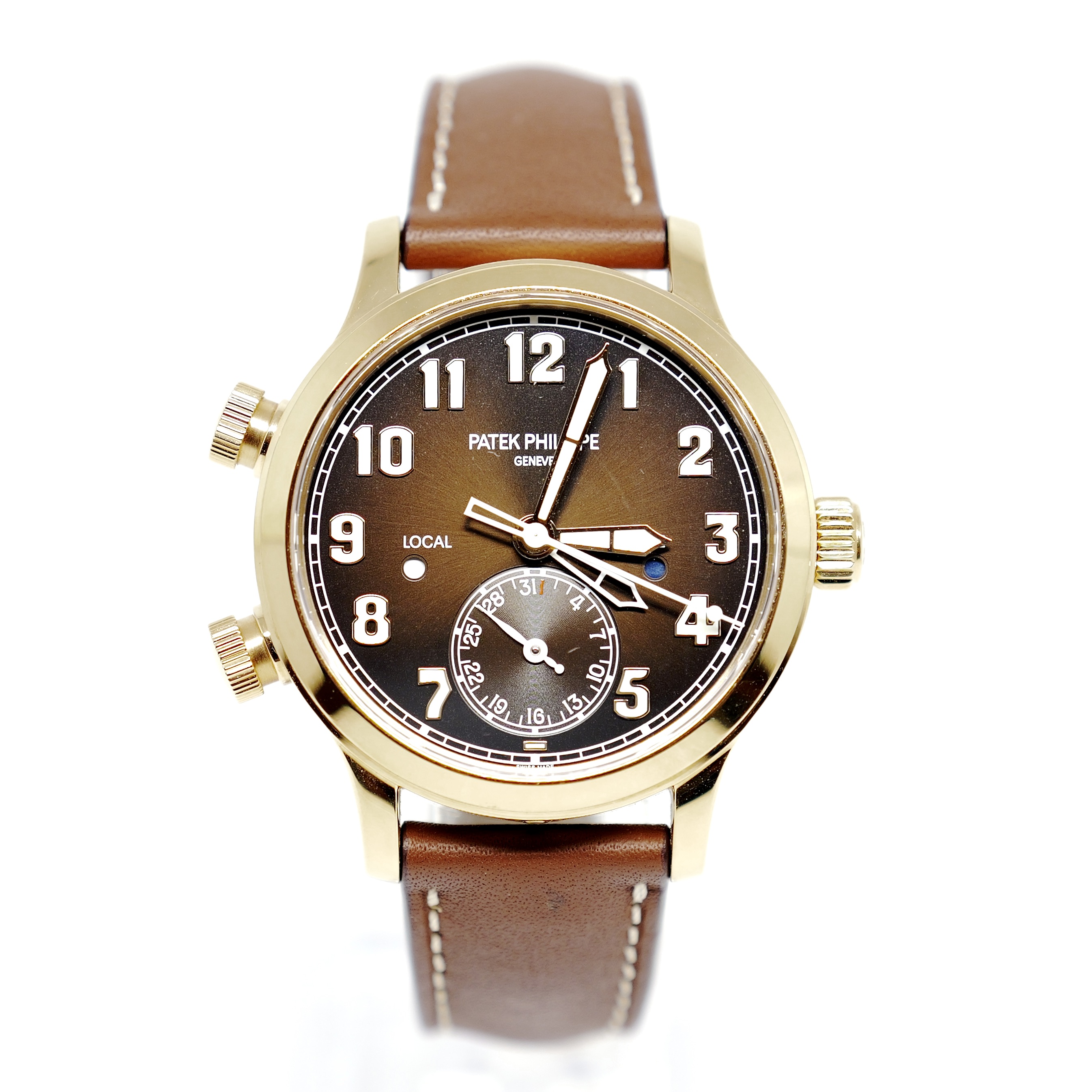 This Patek Philippe Complications 7234R-001 has a brown arabic dial and a leather strap. This Patek Philippe has undergone a thorough inspection of water resistance, accuracy, functionality and condition to determine the level of reconditioning required to meet our strict standards. It has also been referenced against technical documents and manufacturer records where available to ensure authenticity and a clean history. All our watches have a 24-month warranty for your peace of mind.