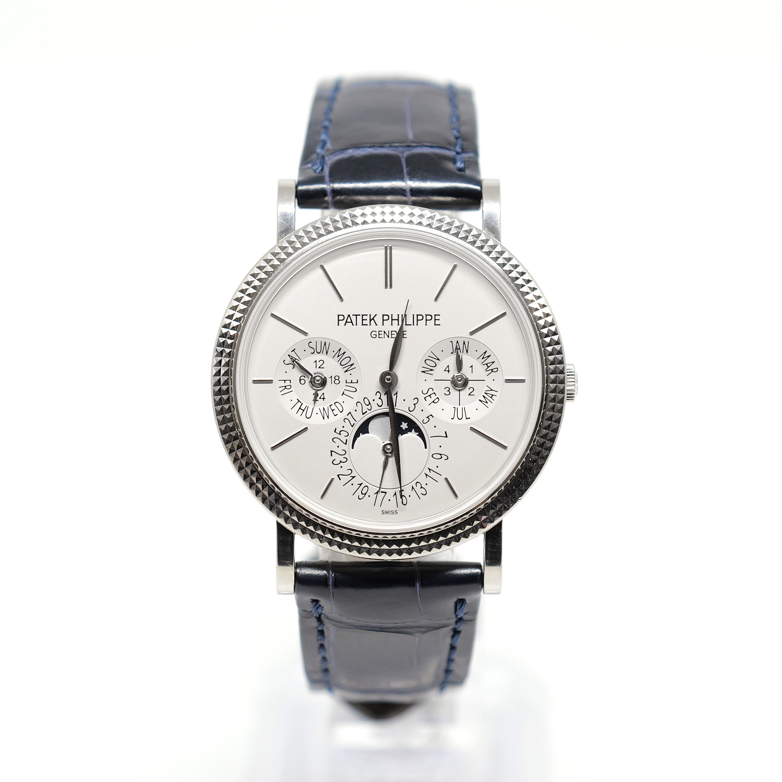 This Patek Philippe Grand Complications 5139G-001 has a silver dial and a leather strap. This Patek Philippe has undergone a thorough inspection of water resistance, accuracy, functionality and condition to determine the level of reconditioning required to meet our strict standards. It has also been referenced against technical documents and manufacturer records where available to ensure authenticity and a clean history. All our watches have a 24-month warranty for your peace of mind.