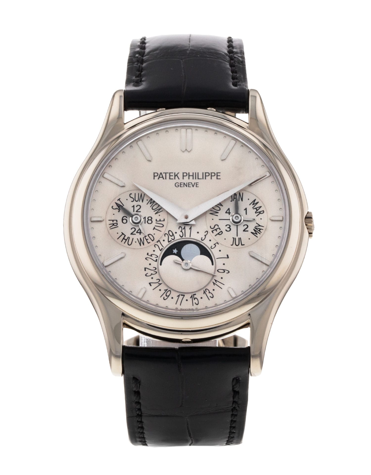 This Patek Philippe Grand Complications 5140G-001 has a white baton dial and a leather strap. This Patek Philippe has undergone a thorough inspection of water resistance, accuracy, functionality and condition to determine the level of reconditioning required to meet our strict standards. It has also been referenced against technical documents and manufacturer records where available to ensure authenticity and a clean history. Our watches have a 24-month warranty for your peace of mind, in conjunction with any remaining manufacturer’s warranty from new or from service.