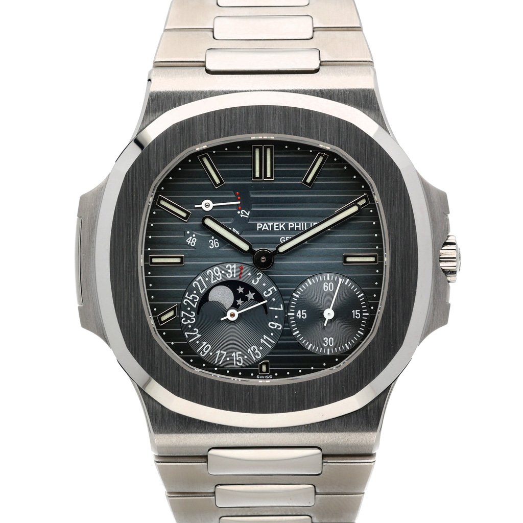 This Patek Philippe Nautilus 5712/1A-001 has a black & blue dial and a bracelet strap. This Patek Philippe has undergone a thorough inspection of water resistance, accuracy, functionality and condition to determine the level of reconditioning required to meet our strict standards. It has also been referenced against technical documents and manufacturer records where available to ensure authenticity and a clean history. All our watches have a 24-month warranty for your peace of mind.