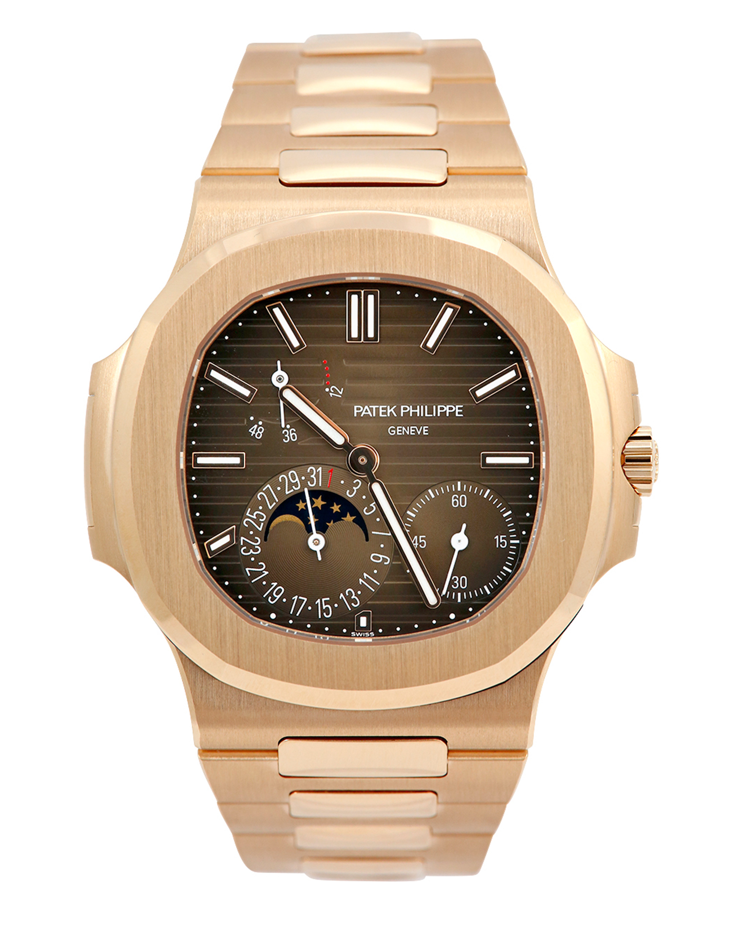 This Patek Philippe Nautilus 5712/1R-001 has a brown dial and a bracelet strap. This Patek Philippe has undergone a thorough inspection of water resistance, accuracy, functionality and condition to determine the level of reconditioning required to meet our strict standards. It has also been referenced against technical documents and manufacturer records where available to ensure authenticity and a clean history. Our watches have a 24-month warranty for your peace of mind, in conjunction with any remaining manufacturer’s warranty from new or from service.