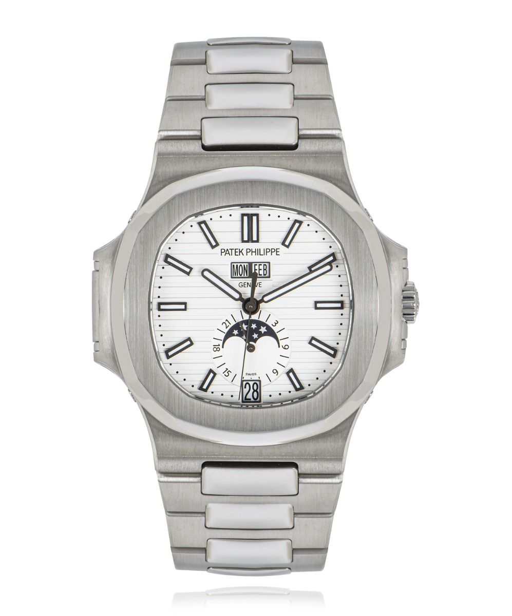 This Patek Philippe Nautilus 5726/1A-010 has a white baton dial and a bracelet strap. This Patek Philippe has undergone a thorough inspection of water resistance, accuracy, functionality and condition to determine the level of reconditioning required to meet our strict standards. It has also been referenced against technical documents and manufacturer records where available to ensure authenticity and a clean history. All our watches have a 24-month warranty for your peace of mind.