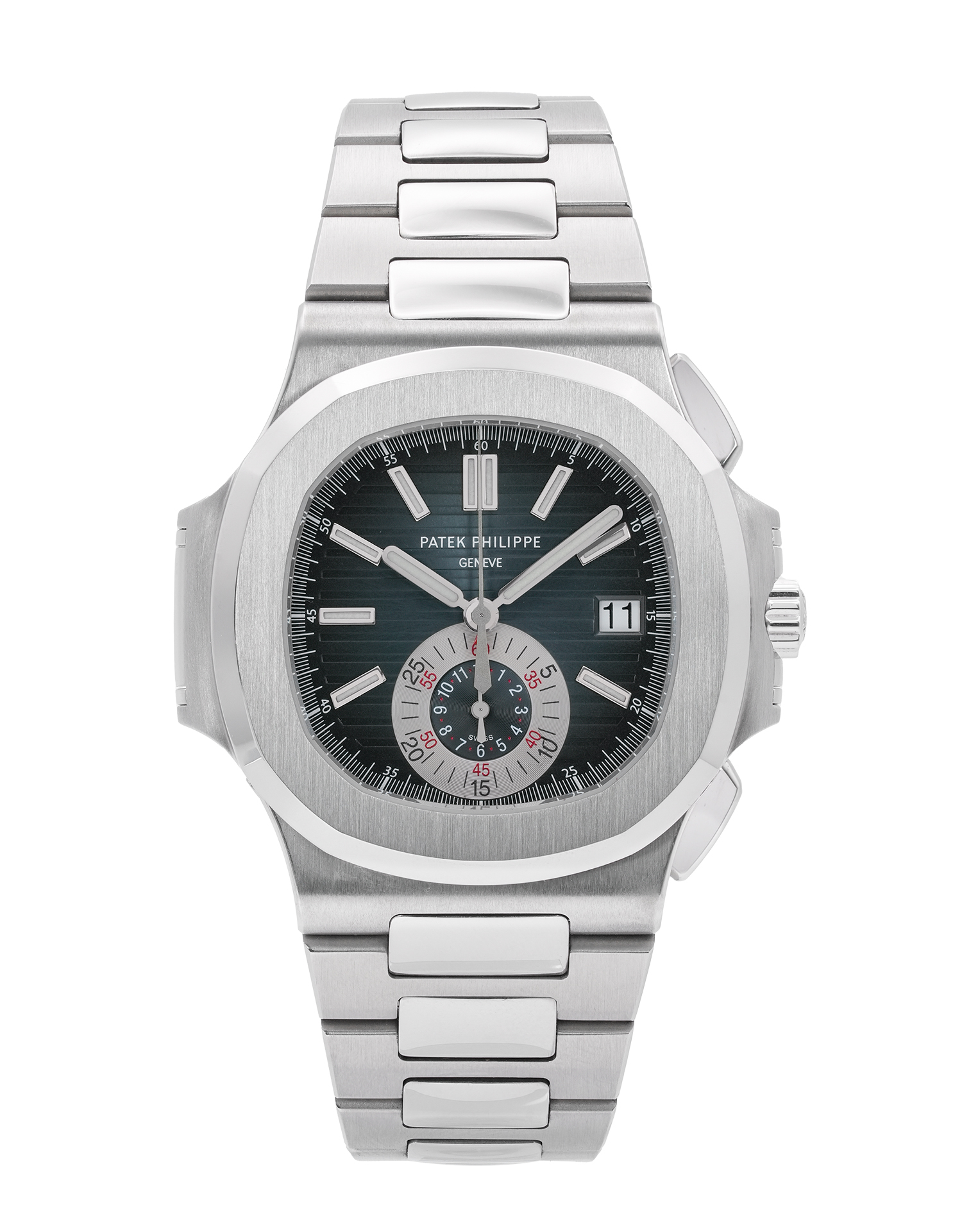 The brainchild of legendary watch designer Gerald Genta, the Nautilus was introduced in 1976 to compete with Audemars Piguet’s Royal Oak, another now-iconic Genta-designed steel sports watch launched a few years earlier. Its case shape, with ear-like projections either side, was like nothing the industry had seen before and despite not being an immediate hit it’s now one of the most sought-after Patek models around. Notably, this all-steel reference 5980 model from 2008 features a single, concentrically designed sub-dial at 6 o’clock to display its chronograph functions, while a small aperture at 3 o’clock displays the date, discreetly set amongst the signature horizontal ridges of the stunning blue-grey dial. Through the transparent caseback, the gold rotor of the automatic Caliber CH 28-520 movement can be viewed. This is a highly sought-after timepiece, now discontinued, from arguably the world’s most illustrious watch brand.