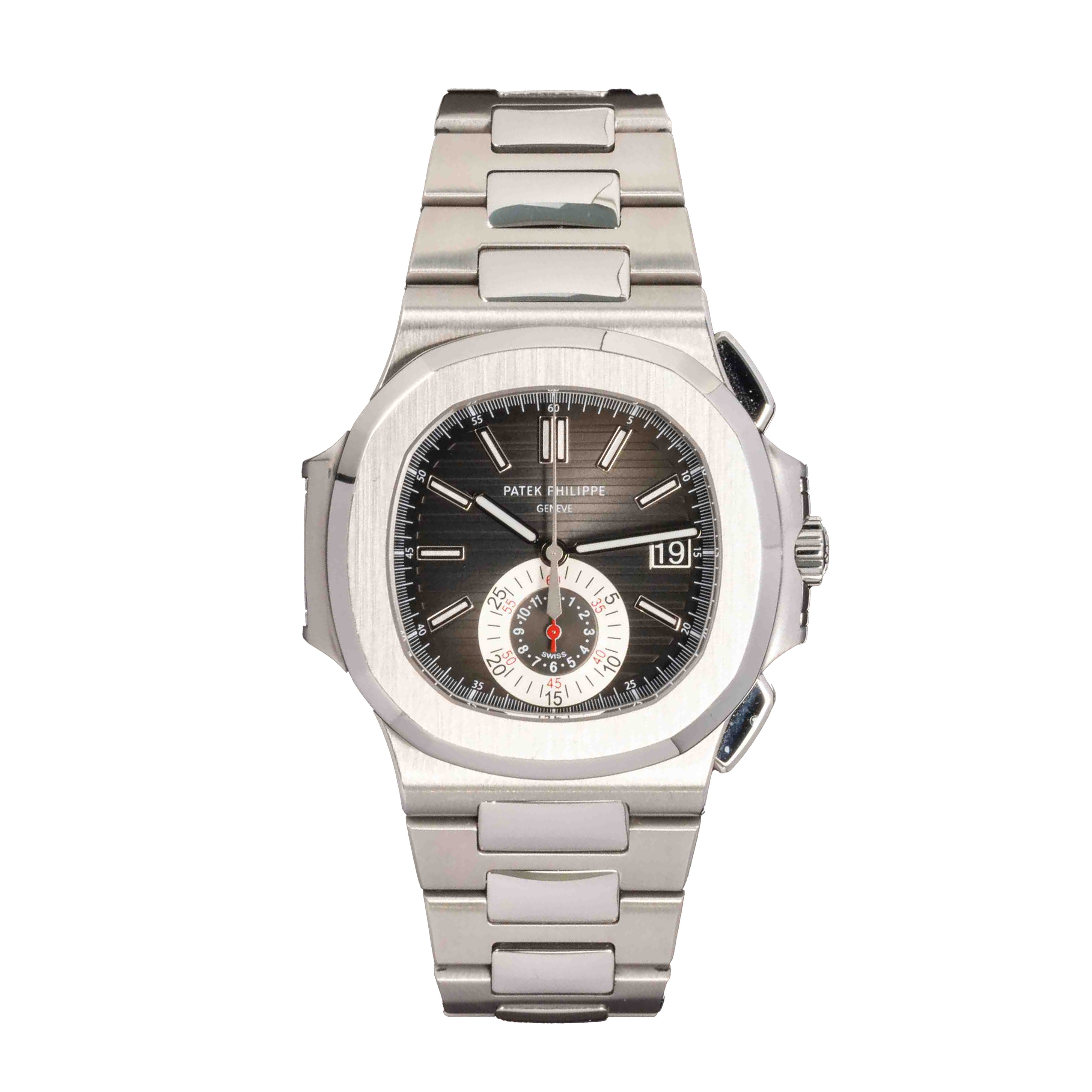 Like many of Gerald Genta’s famous watches, the Nautilus is a horological legend. Patek Philippe's most well-known and desirable sports watch, it's celebrated for some of the best examples of emblematic Genta trademarks: large, angular bezel, comparatively thin case, integrated bracelet and bold, if straightforward, dial. The design is based on the traditional shape of portholes, up to and including the hinges often found on the sides—hence the Nautilus' unmistakable 'ears'. This stainless-steel mono-counter chronograph model features the signature horizontally embossed dial in gradient black-to-grey with a single chronograph subdial that incorporates small-seconds, minutes and hours. Through the sapphire caseback is displayed the self-winding calibre CH 28-520 C, complete with 22k yellow-gold rotor decorated with the Calatrava cross logo and cote de Geneve stripes.