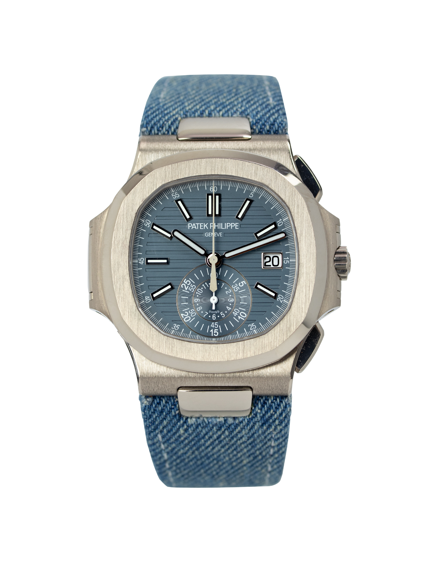 This Patek Philippe Nautilus 5980/60G-001 has a blue dial and a fabric strap. This Patek Philippe has undergone a thorough inspection of water resistance, accuracy, functionality and condition to determine the level of reconditioning required to meet our strict standards. It has also been referenced against technical documents and manufacturer records where available to ensure authenticity and a clean history. Our watches have a 24-month warranty for your peace of mind, in conjunction with any remaining manufacturer’s warranty from new or from service.