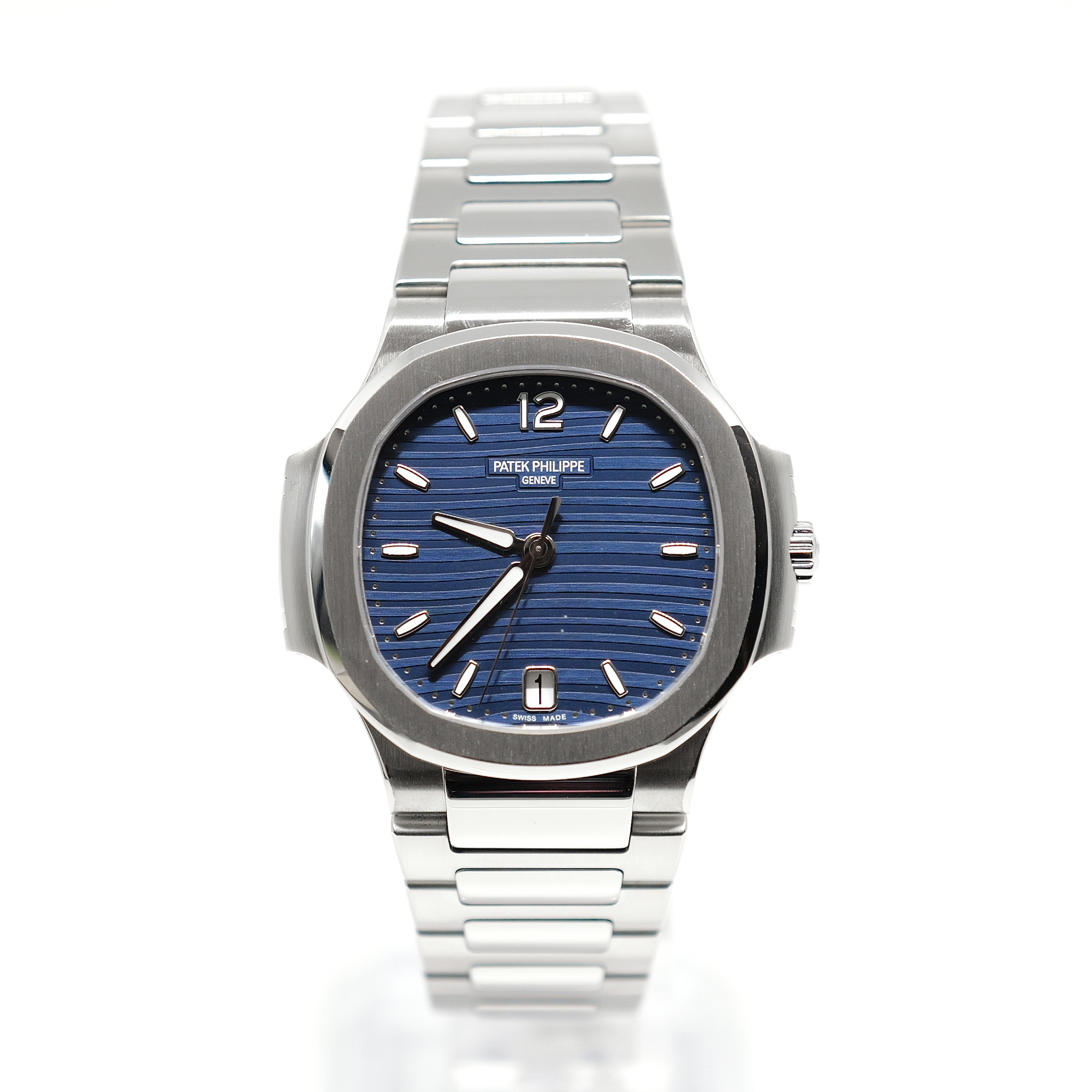 This Patek Philippe Nautilus 7118/1A-001 has a blue baton dial and a bracelet strap. This Patek Philippe has undergone a thorough inspection of water resistance, accuracy, functionality and condition to determine the level of reconditioning required to meet our strict standards. It has also been referenced against technical documents and manufacturer records where available to ensure authenticity and a clean history. All our watches have a 24-month warranty for your peace of mind.