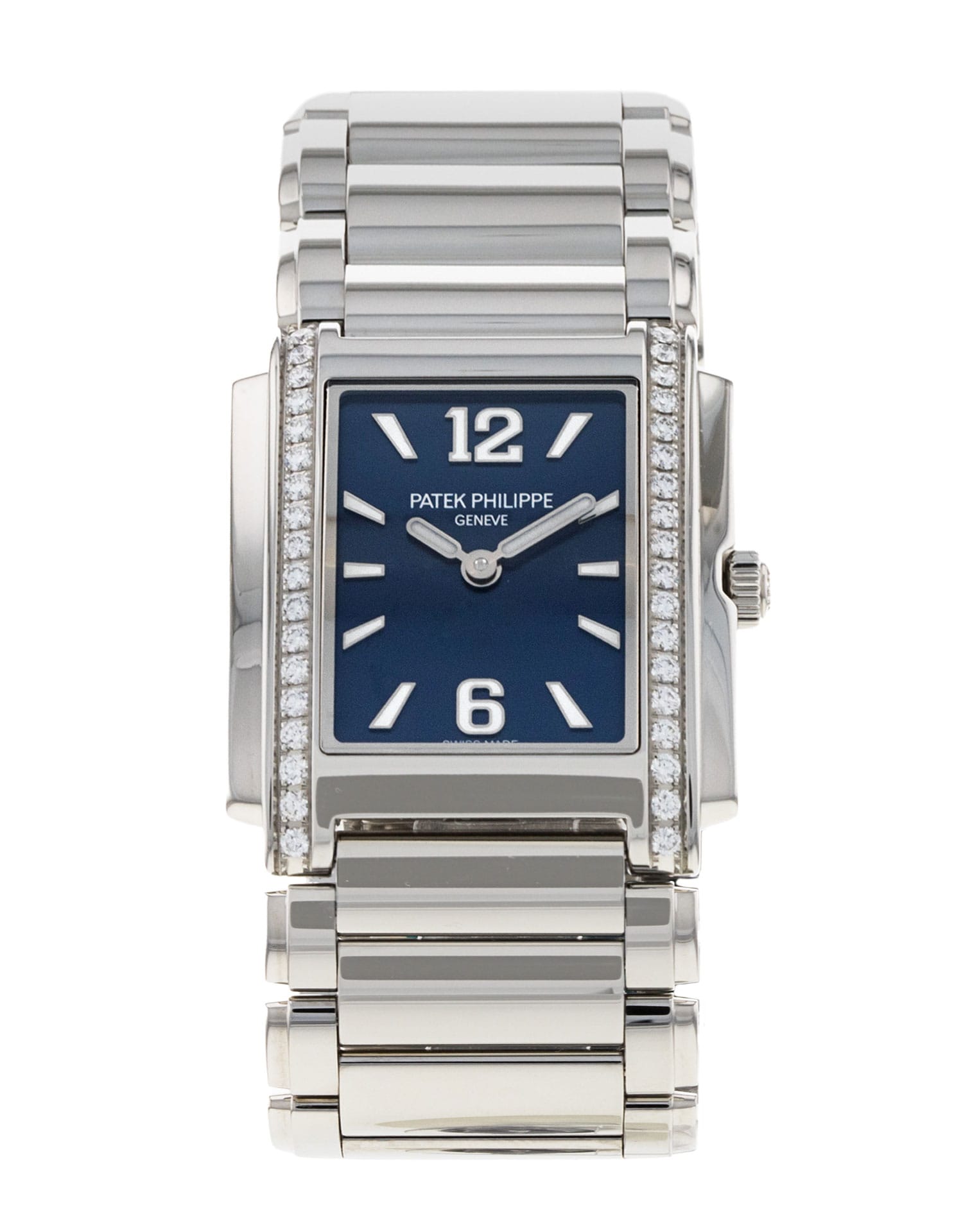 This Patek Philippe Twenty-4 4910/1200A-001 has a blue sunburst dial and a bracelet strap. This Patek Philippe has undergone a thorough inspection of water resistance, accuracy, functionality and condition to determine the level of reconditioning required to meet our strict standards. It has also been referenced against technical documents and manufacturer records where available to ensure authenticity and a clean history. Our watches have a 24-month warranty for your peace of mind, in conjunction with any remaining manufacturer’s warranty from new or from service.