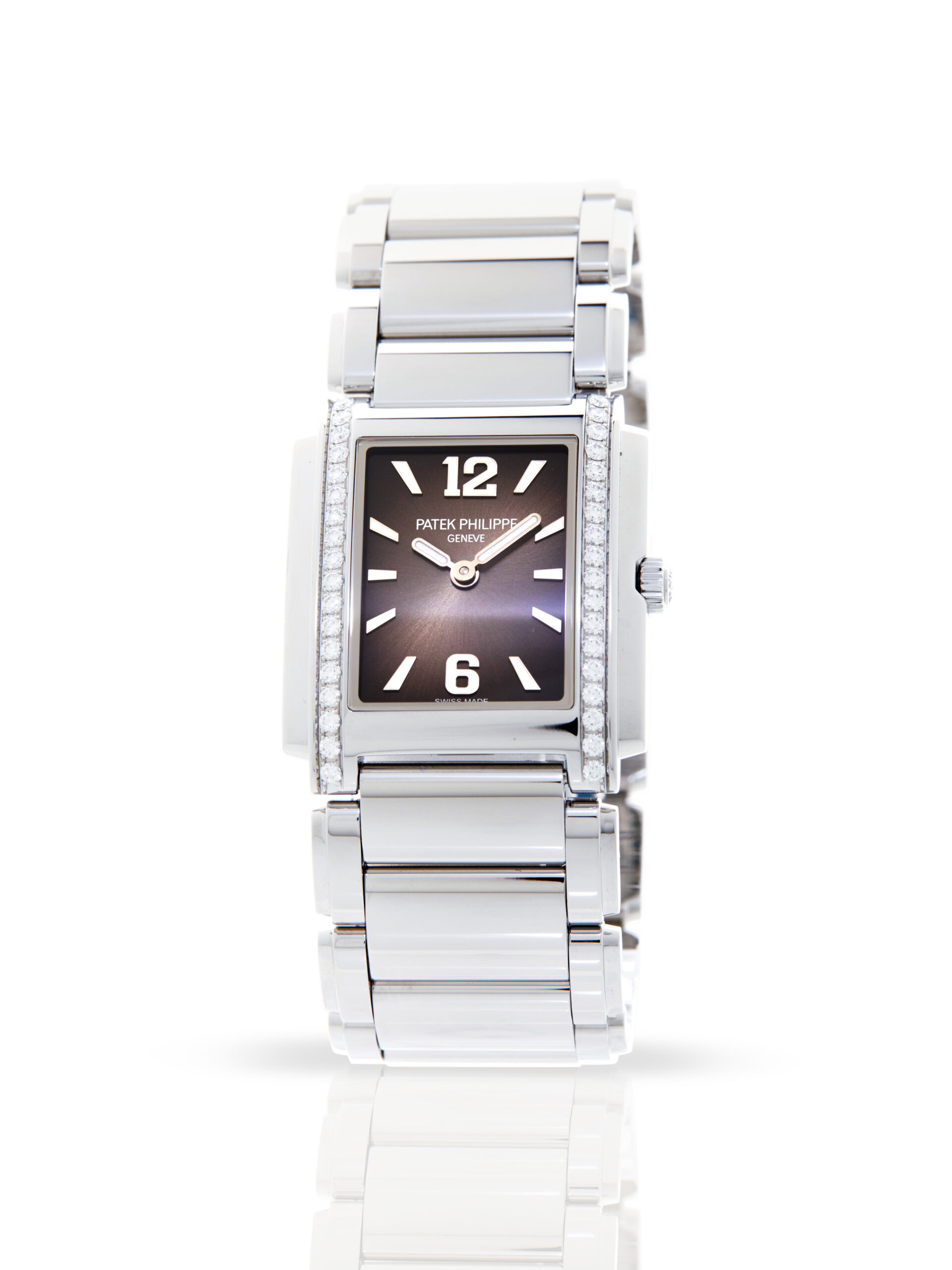 This Patek Philippe Twenty-4 4910/1200A-010 has a grey dial and a bracelet strap. This Patek Philippe has undergone a thorough inspection of water resistance, accuracy, functionality and condition to determine the level of reconditioning required to meet our strict standards. It has also been referenced against technical documents and manufacturer records where available to ensure authenticity and a clean history. All our watches have a 24-month warranty for your peace of mind.