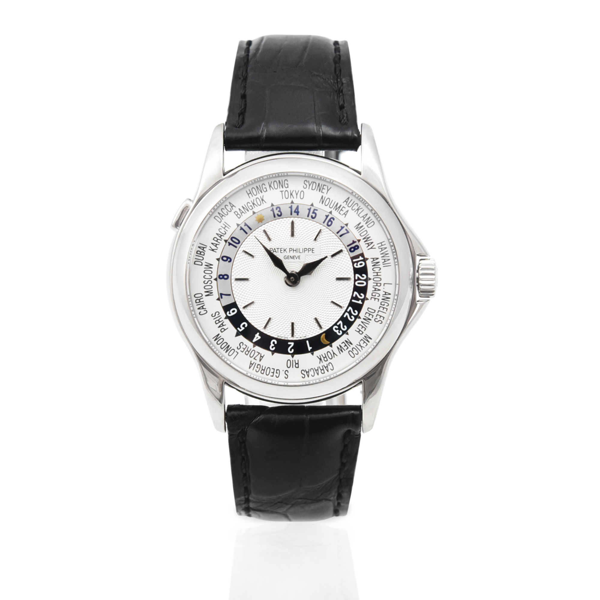 Invented by Louis Cottier in the 1930s, Patek Philippe's World Timer is considered by many to be the cream of luxury travelling watches. Rather than simply adding an extra hand to show a second time zone, the watch features a much more complex – yet intuitive and satisfying – operation. The current home city is shown at 12 o'clock, and the current hour is directly beneath it, continuously moving counter-clockwise. The 5110 is one of the finest models in Patek's history – many collectors prefer it even to the more recent 5130, due to its smaller size and beautiful guilloché dial. It uses the spectacular in-house Cal. 240, which requires just a single button press to change the time zone on all three indications simultaneously (hands, hour track and reference city).